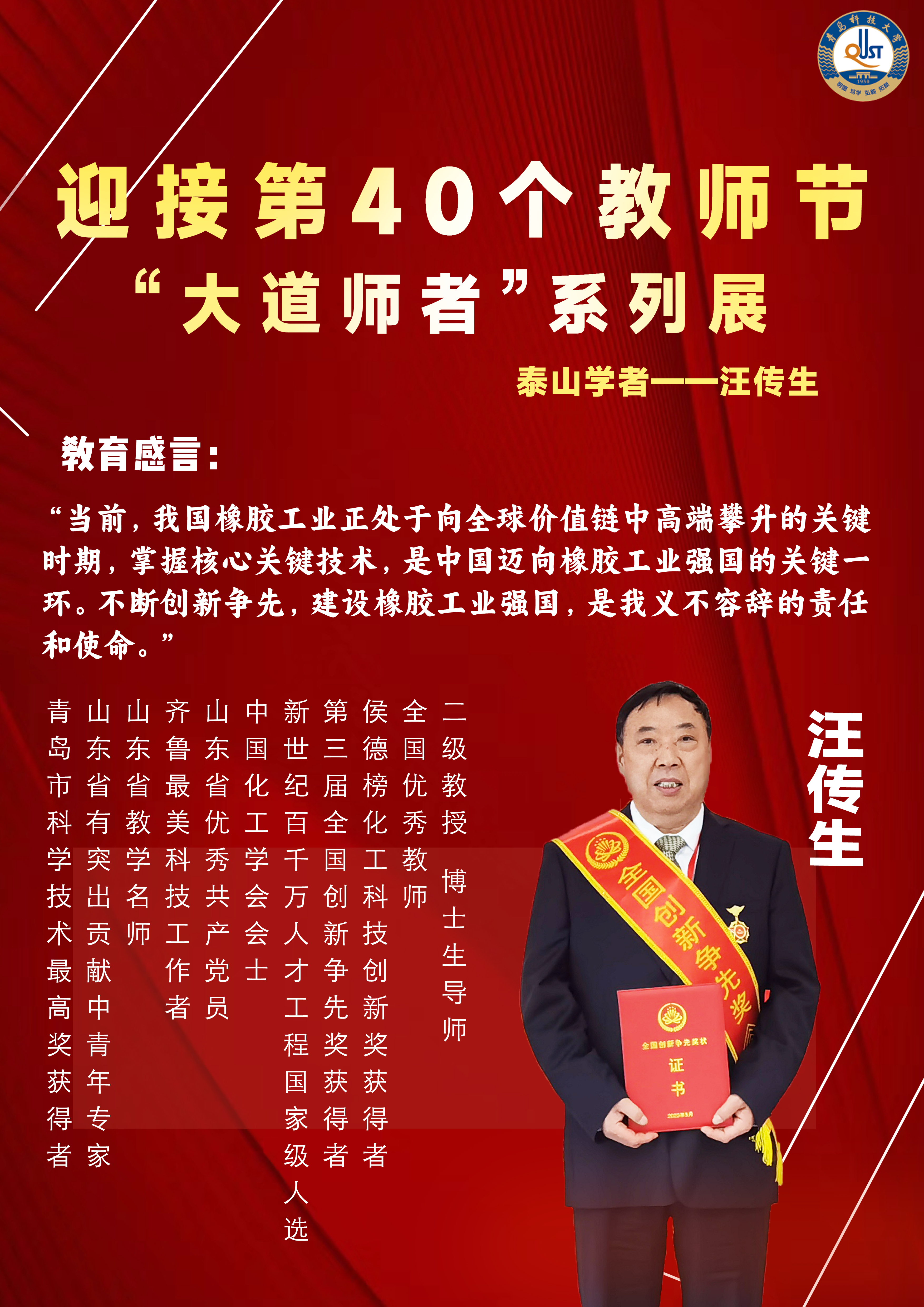 杜爱华,教授,博士生导师,担任教育部工程教育认证专家组长。主要研究方向是橡胶的高性能化与功能化以及动态疲劳性能。先后被评为青岛市教学名师、青岛市三八红旗手、中国大学MOOC优秀教师、石化教学名师、山东省教学名师。从教近30年,一直坚守教学一线,承担本硕博课程4门,主持建设国家精品视频公开课“橡胶与人类”、山东省一流本科课程“橡胶与人类”、山东省课程思政示范课程“橡胶工艺学”,参与建设并主讲国家一流本科...