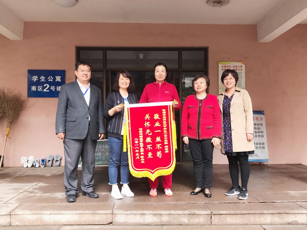 记者 吕艳萍5月22日,崂山校区南2舍公寓楼楼长杨启香收到了一面绣有“敬业一丝不苟、关怀无微不至”的锦旗。这面锦旗是传播学院2017级广告学专业学生陈钰坤家长委托学工办老师送给杨启香的,以感谢她对学生的关心和照顾。“这一面小小的锦旗,不仅体现了宿舍管理员对学生的关爱,也是学生公寓开展‘beat365美寓、温馨家园’主题活动服务育人成效的生动写照,是学生辅导员和公寓管理员有机融合‘双育人’的典范。”谈到第六届十佳师...