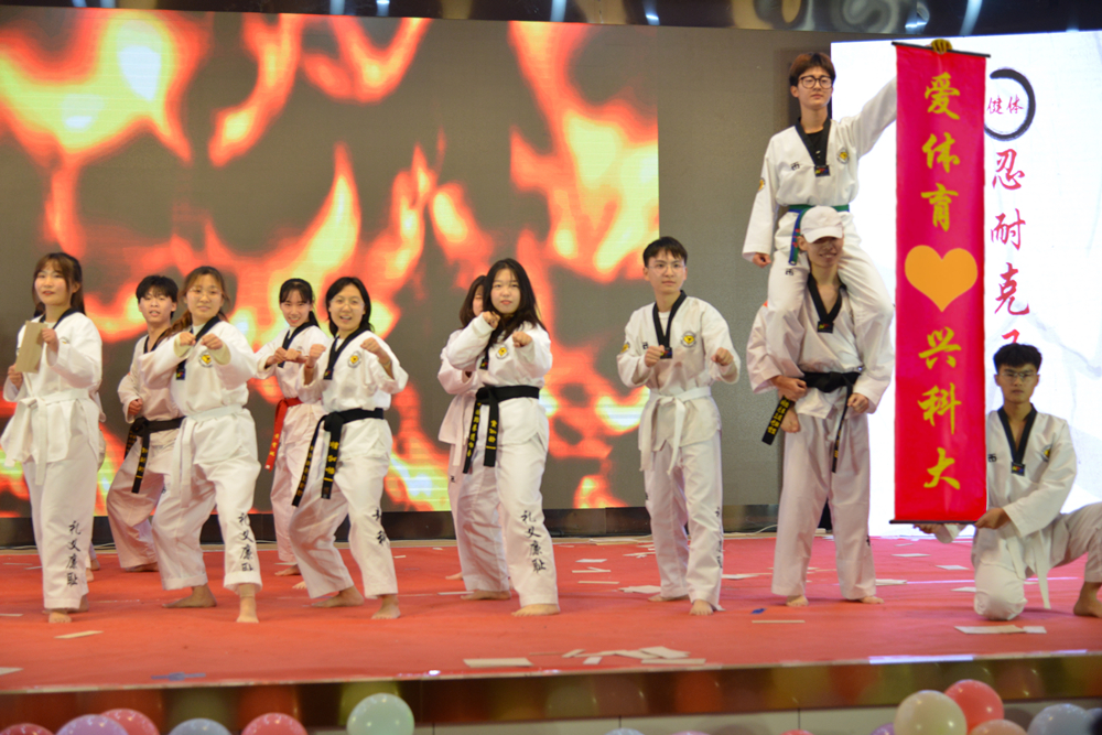 第二篇章《爱体育·兴beat365》,V-show体育舞蹈社的《飞天》,生动演绎中华传统文化之源远流长、博大精深;梅花桩武术协会、弈剑阁陈氏太极拳协会带来的武术表演《强体魄·扬国威》,展现中华传统武术的魅力;跆拳道协会带来的《beat365力量》彰显青春力量;跳绳协会、青稞动漫社的《天行健·绳彩飞扬》以“光影”诠释运动风采。舞蹈、跳绳、武术、轮滑、跆拳道的融合表演,充分展示了学校体育综合改革之体育类社团打造“月月有联赛、周周有比赛、人人都参赛”体育联赛平台的阶段性成果。
