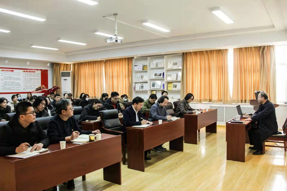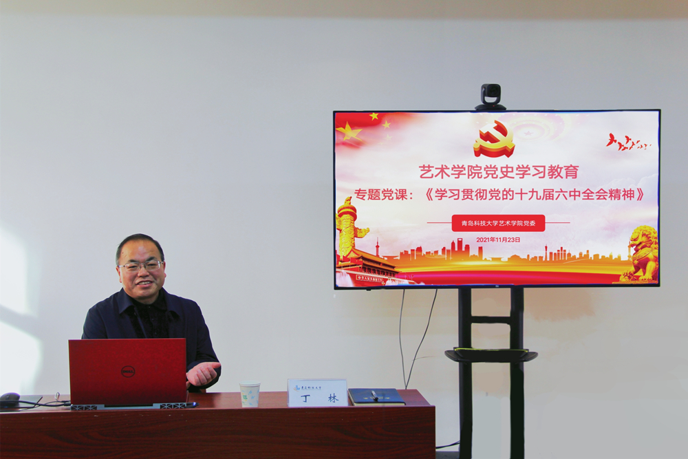 11月23日,艺术学院在学院楼213党建活动室开展“学习贯彻党的十九届六中全会精神”专题党课。学校党委常委、副校长丁林应邀作题为《百年辉煌 接续奋斗——学习贯彻党的十九届六中全会精神》的报告。