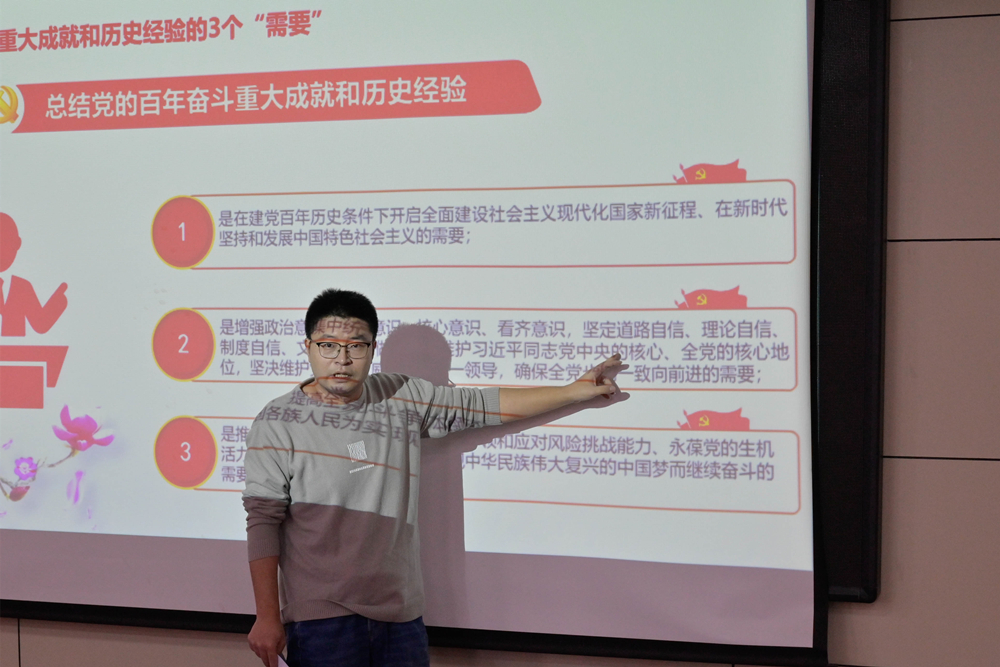 聚焦氛围营造“热学”,在“走深走实”上下功夫。全面抓好“领头雁”队伍引领学习的辐射带动作用,在全院范围内营造了浓厚的学习氛围。11月23日下午,学院召开了“聚焦十九届六中全会,争做橡尚高材生”专题学习活动,学院兼职辅导员、马克思主义学院教师刘林以《如何正确把握中国共产党百年奋斗的历史经验》为题,从“三个需要”“十大历史经验”着手,带领全体辅导员、学生干部一起学习十九届六中全会精神;“橡尚”党员宣讲团成员曲皓童、学生代表陈萌玥分别分享了自己的学习心得。