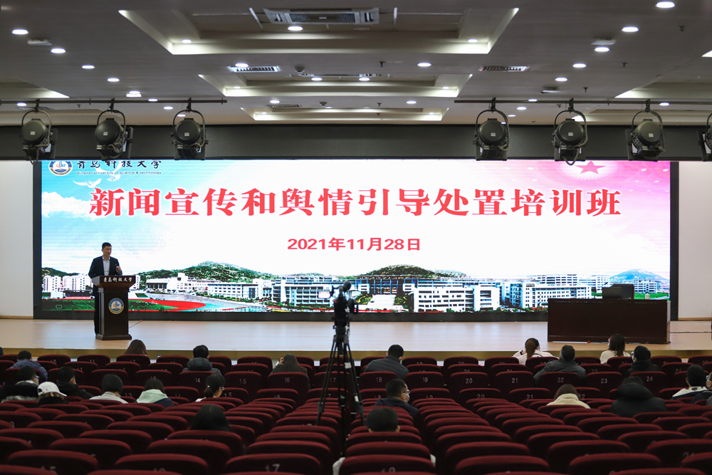 11月28日,学校新闻宣传和舆情引导处置培训班在崂山校区第二报告厅举办。党委常委、党委宣传部(党委教师工作部)部长陈刚出席开班式并讲话。