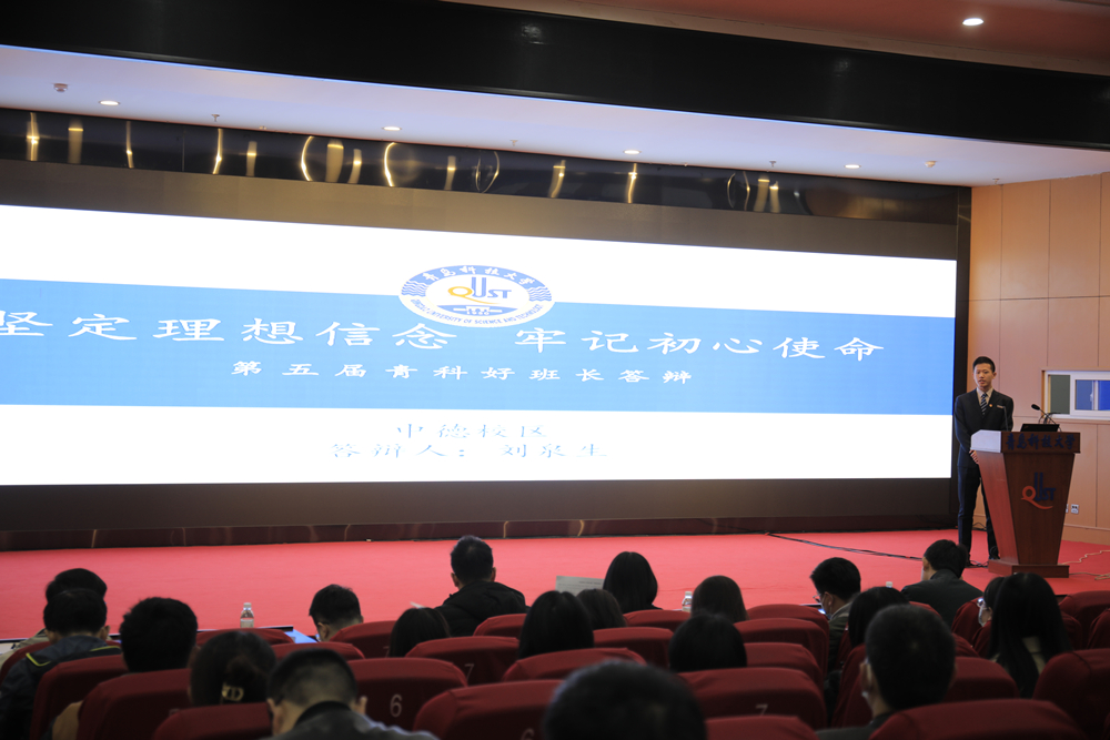 日前,学校第五届“青科好班长”评审会在崂山校区第三报告厅举行。本次评选活动经组织推荐、资格审核、宣传展示等环节,共有23名候选人进入现场评审。评审会包括风采展示和案例分析两个环节,候选人在风采展示环节介绍了个人情况、班级文化、学风建设、班级活动等内容,以PPT、视频等多种形式分享了自己作为班长的心路成长历程和班级学习生活中的精彩故事。在案例分析环节,各候选人针对班级管理服务过程中常见的学风建设、活动开展、宿舍管理、心理健康、疫情防控等案例,现场进行了分析和解答,展现了良好的统筹协调、处理问题、解决问题的能力以及临场应变能力。