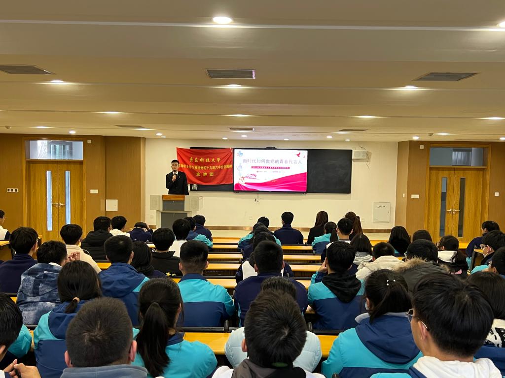 “山东省青马工程培训班”优秀学员张天一,结合自身学习感悟,鼓励同学们“认真学习全会精神,从百年党史中汲取青春力量,争做坚定有为的青年马克思主义者”;“青岛市青马工程培训班”优秀学员李泓昭,通过“十个坚持”讲述了党的百年历史宝贵经验,并号召青年学生要在百年党史中汲取奋斗力量;学校第二十四届研究生支教团成员王一帆,曾是轻工工程学校2015级学生,他结合自身成长经历,向同学们分享自己如何从党的百年奋斗历史经验汲取奋勇向前的不竭动力,坚定选择服务西部,促进自身成长;机电学院研究生周玉婷,从抗击疫情中的大国担当,分享自己对“中国共产党为什么能”的认识;马克思主义学院研究生谭艺,结合自身专业所学,从百年党史出发,深刻解析党的百年奋斗的十大历史经验。