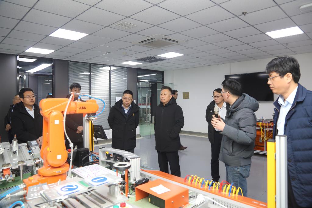 与会双方围绕人才培养、师资队伍建设、实践平台共享等方面进行了深入交流。调研期间,吕万翔一行参观了山东科技职业学院互联网+纺织服装实训中心、山东省智能制造公共实训基地。