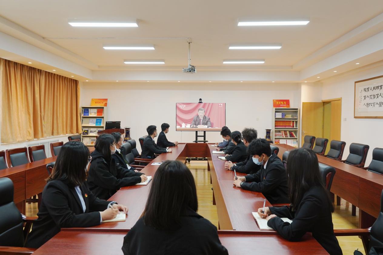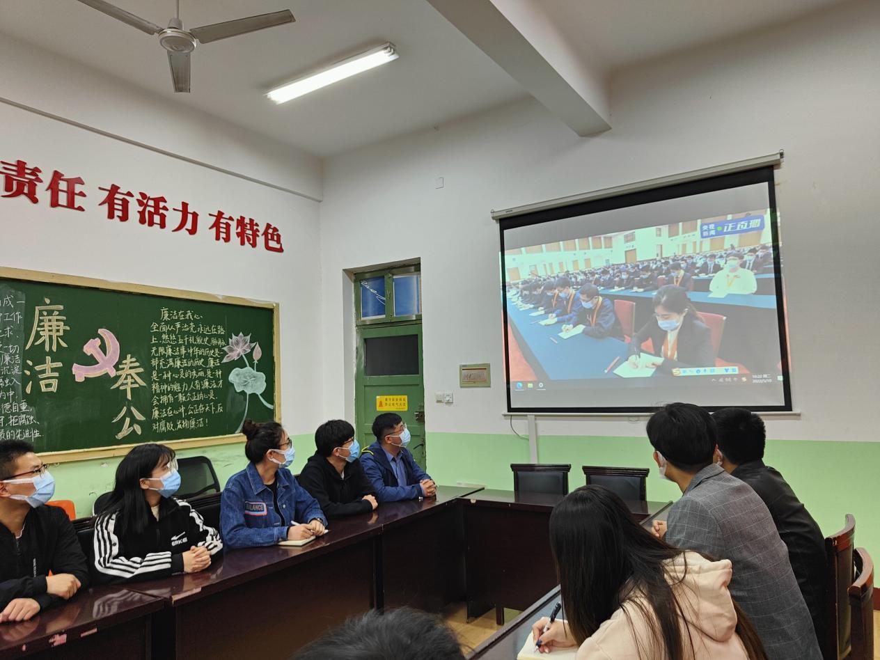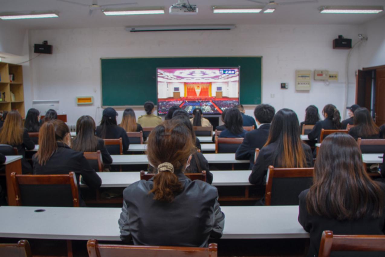 法学院团委结合学校疫情防控要求,采用线上线下相结合的形式,组织全体师生观看了大会直播。