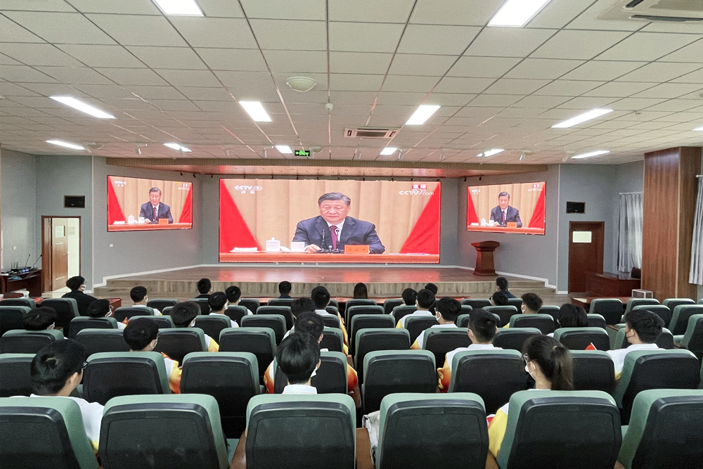 数理学院团委组织学生党员、青年团员代表在学院楼220会议室集中观看庆祝中国共产主义青年团成立100周年大会,学习习近平总书记的重要讲话精神。