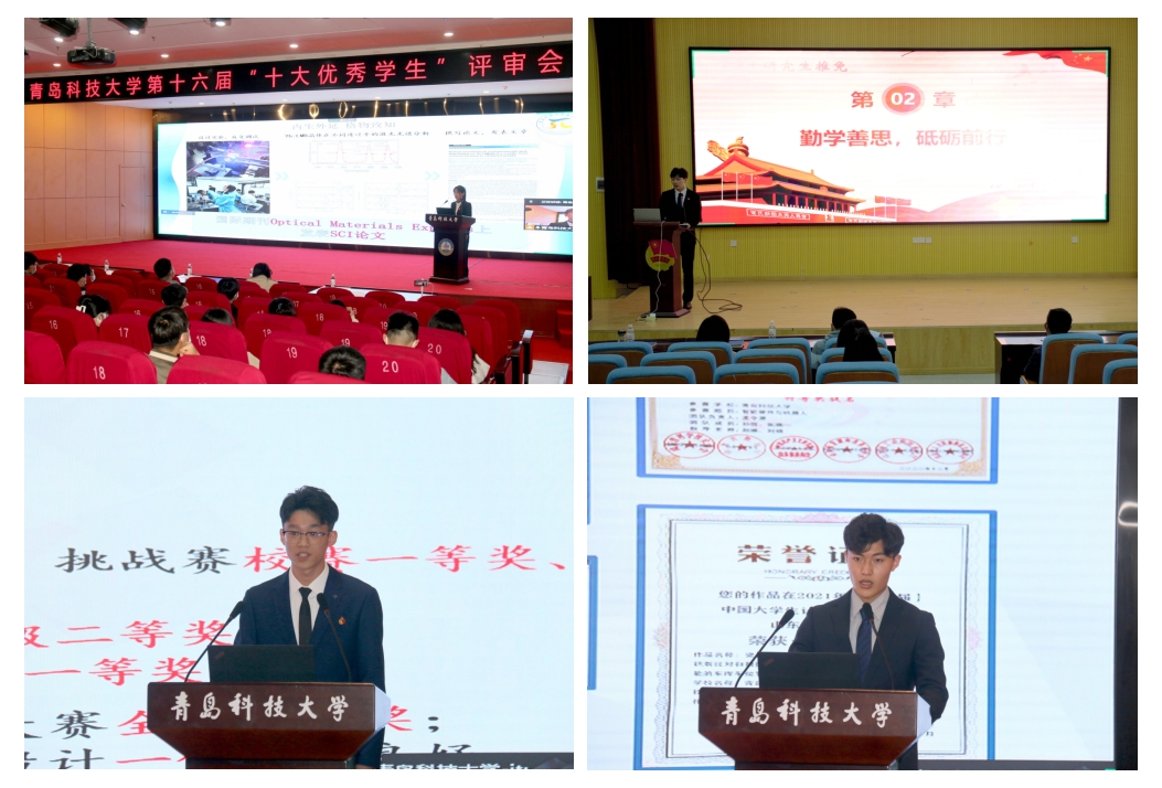 此次“十大优秀学生”现场评审环节采取线上线下相结合的方式进行,主会场设在崂山校区,四方校区、高密校区设分会场,三校区同步线上进行。评审会上,23名候选人紧密结合自身学习、工作实际情况,从学术科研、班团活动、志愿服务、社会实践、创新创业等方面展现了多彩的大学生活与收获,展现了beat365学子勇于践行“明德、笃学、弘毅、拓新”的良好精神面貌。各学院(校区)19名教师代表与95名学生代表结合候选人事迹与现场表现进行了评审投票。