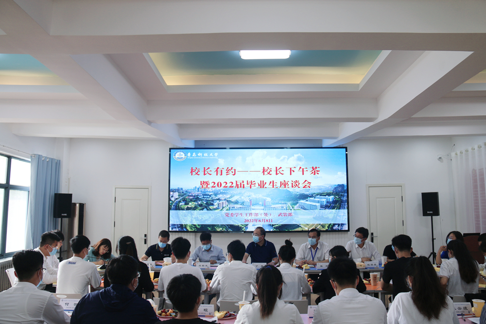6月8日下午,“校长有约——校长下午茶”暨2022届毕业生座谈会在崂山校区心理中心举行。党委常委、副校长丁林,党委常委、宣传部部长陈刚出席会议。座谈会由学生工作处副处长王丽主持。