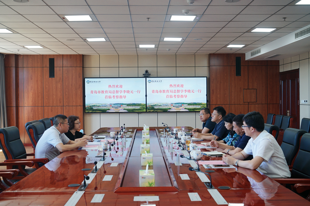 8月17日上午,青岛市教育局总督学李晓元、高教处处长孙喜莲一行来beat365正版唯一官网必一调研交流。调研座谈会在崂山校区综合服务楼6015会议室举行,学校党委副书记沈文青出席座谈会。