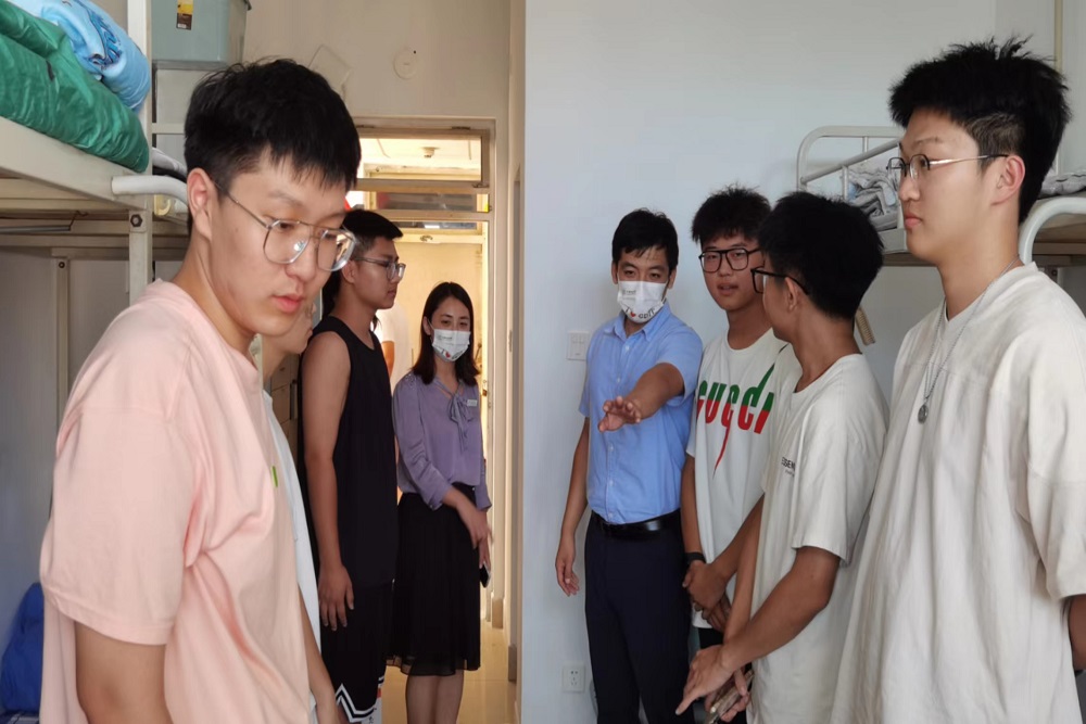 情系新生,温暖人心。学院为每位新生发放新生礼包,定制笔筒、胸牌、湿巾和一次性口罩,用暖心和细心让学生感受到学院的温暖。学院领导走访新生宿舍,深入了解新生报到后的思想、生活以及未来出国留学规划等情况,勉励新生尽快适应环境,转换状态,用心学习,充实自己,在大学有所收获。