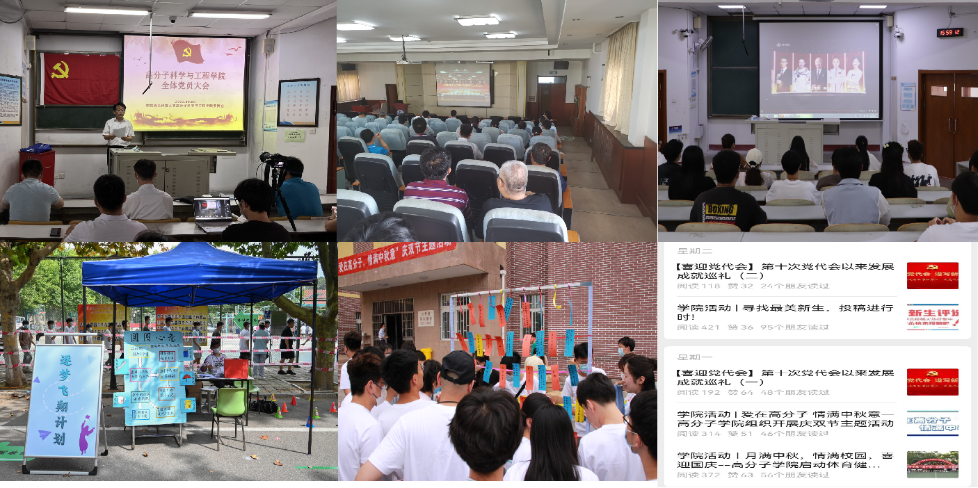 为喜迎学校第十一次党代会胜利召开,进一步引导学生坚定理想信念,做好爱校荣校教育,营造良好学院舆论氛围,以良好的精神风貌迎接学校第十一次党代会胜利召开,近日,高分子学院组织开展了“启智润心勇‘橡尚’,砥砺奋进新征程”宣传活动。