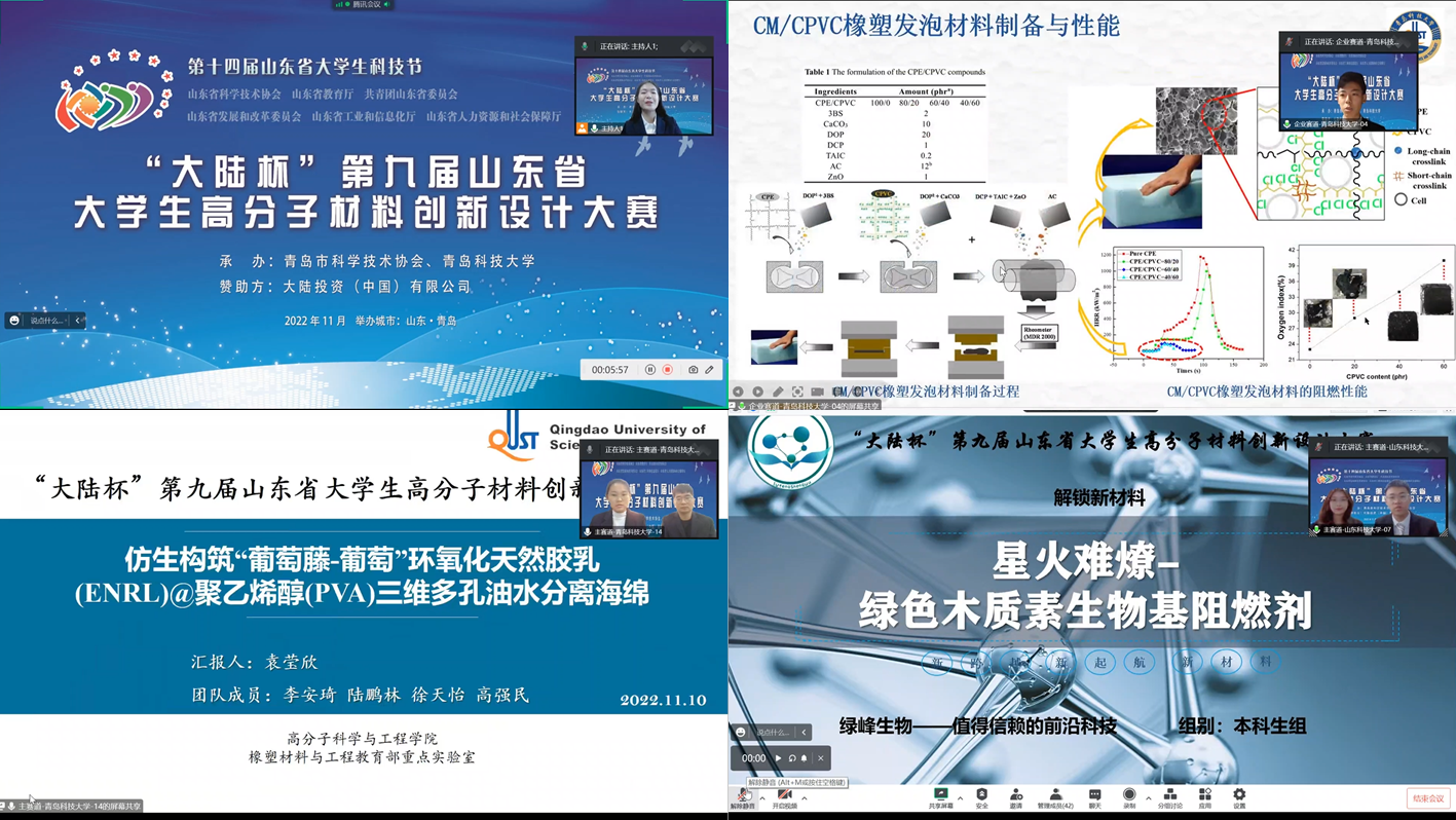 近日,由山东省科协、省教育厅、团省委、省发改委、省工信厅、省人社厅主办,青岛市科协、beat365正版唯一官网必一承办,大陆投资(中国)有限公司赞助支持的“大陆杯”第九届山东省大学生高分子材料创新设计大赛决赛在beat365举行,来自西南大学、武汉工程大学、山东科技大学、beat365正版唯一官网必一等全国11所高校的33支队伍参加最终决赛,决赛以线上答辩方式举行。