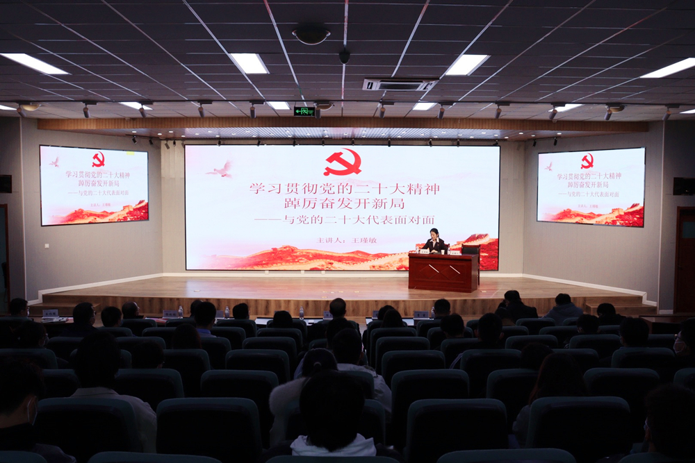 为进一步深入学习宣传贯彻党的二十大精神,11月29日,机电工程学院邀请党的二十大代表、招商银行青岛分行崂山支行王瑾敏来院宣讲党的二十大精神。学院党委理论学习中心组成员、党支部书记、辅导员、学生代表聆听了宣讲。宣讲会由学院党委书记任允晓主持。