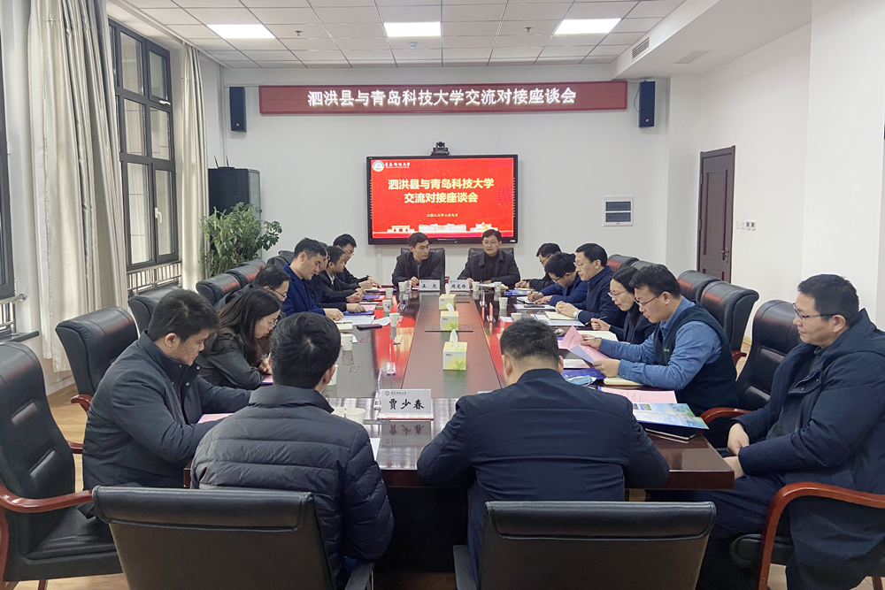 2月9日上午,江苏省宿迁市泗洪县副县长、第十五批科技镇长团团长高小平一行来校考察交流。校务委员、合作发展处处长聂广明在崂山校区综合服务楼2015会议室会见高小平一行并举行座谈。