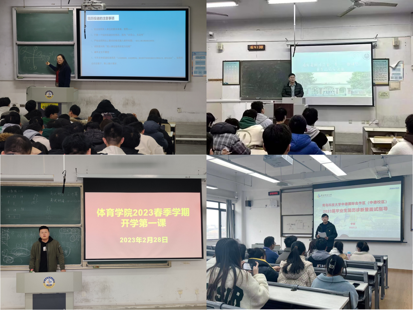 自动化与电子工程学院毕业生辅导员从就业形势、就业选择等方面,结合实际案例引导毕业生树立正确的就业观,重点推介西部计划、参军入伍等国家政策,鼓励毕业生投身基层,将个人理想融入国家事业发展。化工学院以“扬帆起航‘职’等你来”为主题,引导毕业生摆正就业心态,拒绝等、靠、要思想,积极主动作为,把握住每一次的求职机会。体育学院开展“校友和你聊职场”活动,邀请2019届校友刘超向毕业生分享大学生活,根据当前就业形势和就业环境结合自身的工作,解答了毕业生关于就业方面的疑惑。中德校区在毕业年级开展简历诊断暨面试指导活动,从版面设计、模块设置、内容优化等方面对学生的简历进行精修和完善提升,并分析了春招面试的特点、求职过程中的注意事项。