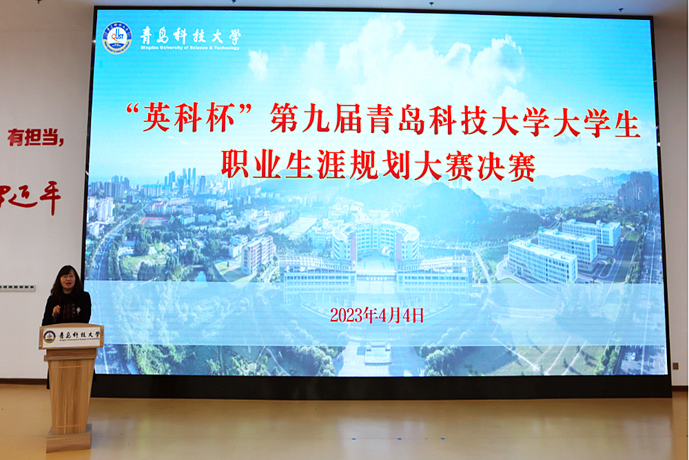 4月4日下午,“英科杯”beat365正版唯一官网必一第九届大学生职业生涯规划大赛总决赛在崂山校区北苑团学报告厅举行。青岛市公共就业和人才服务中心市场服务部部长华慧、英科医疗科技股份有限公司招聘经理陈闽、赛轮集团全球人才平台总监张彤、浦林成山控股有限公司人力资源部经理夏芳、海尔智家校园招聘经理王健担任本次大赛的评委。