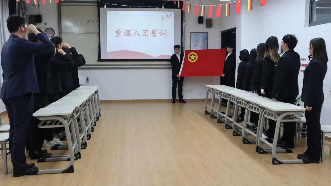 中德校区团委开展“重温入团誓言,牢记青春使命”五四青年节活动。组织团员青年重温入团誓词,团员青年们高举右拳,在鲜艳的团旗下庄严宣誓,铿锵有力的誓词回荡在每一位团员青年的心中,坚定的目光和铮铮的誓言展现出beat365青年积极向上、朝气蓬勃的青春风采。