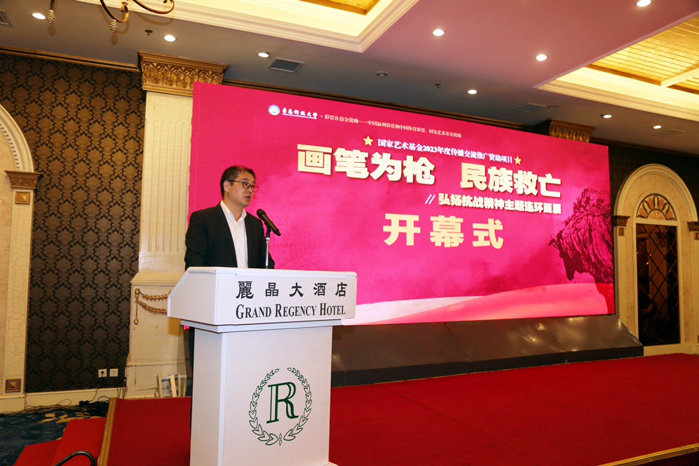 开幕式上,学校党委常委、副校长李志波表示,本次主题展计划在全国6个与主题密切相关的地市进行巡展,这些地市既有重大抗日事件发生地,又有解放战争战役所在地;既有城市美术馆,又有县、乡镇级革命老区文化馆和高校美术展览厅。展览将面向广大人民群众,尤其是年轻一代,弘扬抗战精神,进行爱国主义教育和德育、美育教育。