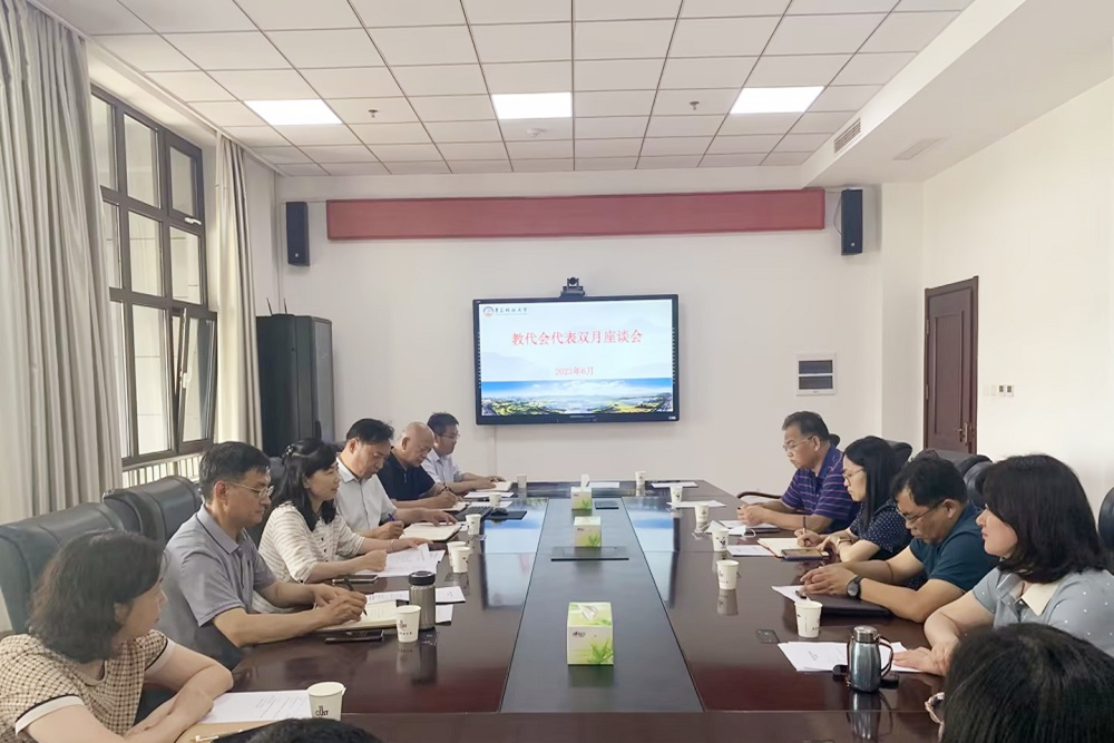 6月27日,教代会代表双月座谈会在崂山校区综合服务楼2015会议室召开。党委副书记沈文青出席座谈会并讲话,会议由工会主席郭曰铎主持。