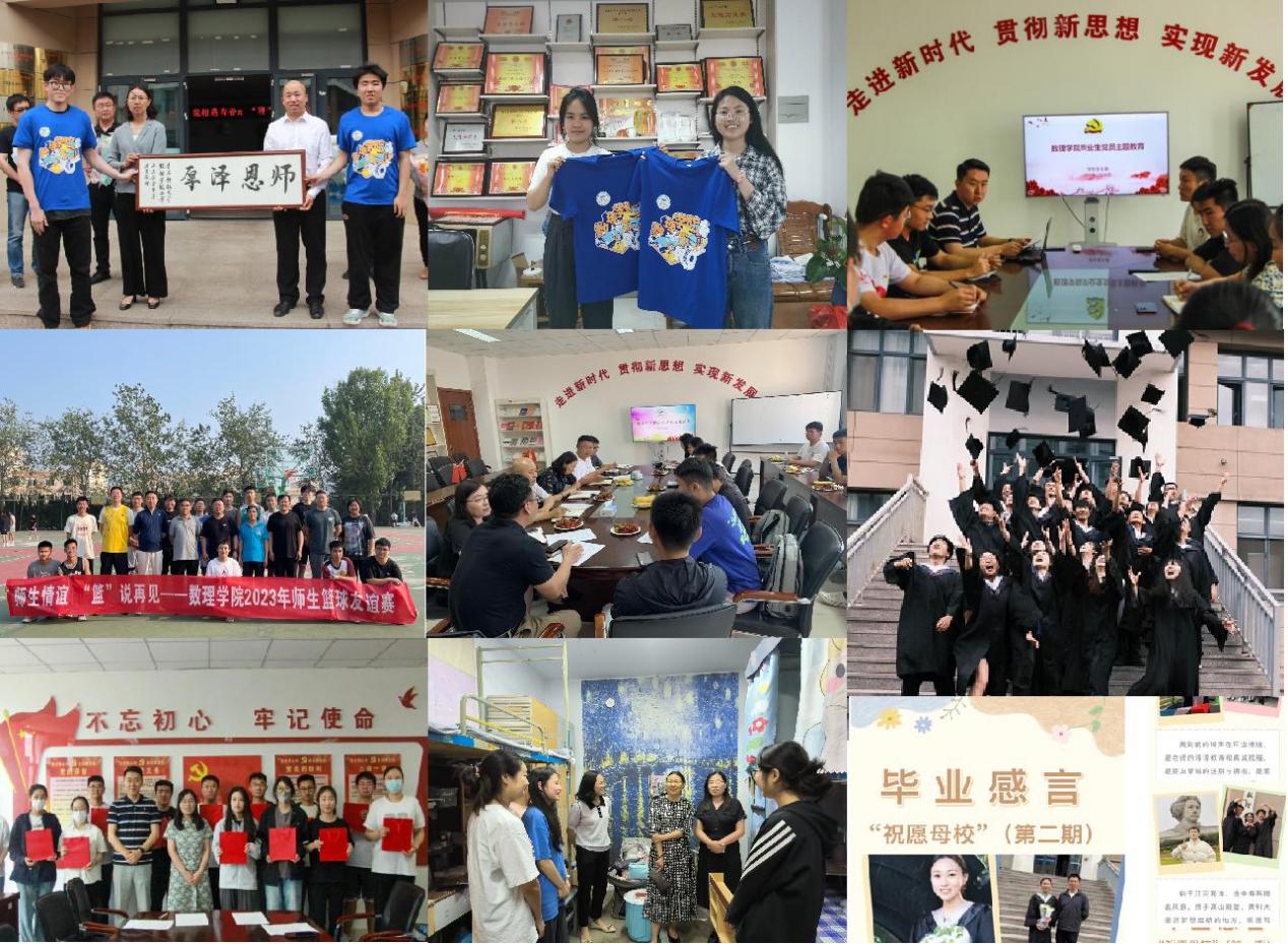 数理学院团委开展“感恩奋进新时代 逐梦奋斗新征程”毕业生系列活动,营造积极、温馨、和谐的离校氛围。赠送毕业礼物;为每位毕业生精心设计文化衫,表达对毕业生的深切厚望和无限期待。举办毕业生座谈会;听取毕业生的意见建议,共话离别之情,共望未来发展。开展师生篮球赛;以篮球之名,为毕业生送行,进一步增进师生友谊,留下美好而珍贵的回忆。征集“祝愿母校”感言;引导毕业生把最淳朴、最真挚、最美好的祝愿献给母校。开展毕业生党员主题教育;上“最后一次党课”、分享一次初心感悟、作出一份庄重的承诺,在思想洗礼中汲取奋进力量。走访毕业生宿舍;为毕业生送去祝福和温暖,勉励毕业生弘扬“beat365家风”,践行“橡胶品格”,将数理人的严谨、笃学、钻研精神传承下去。