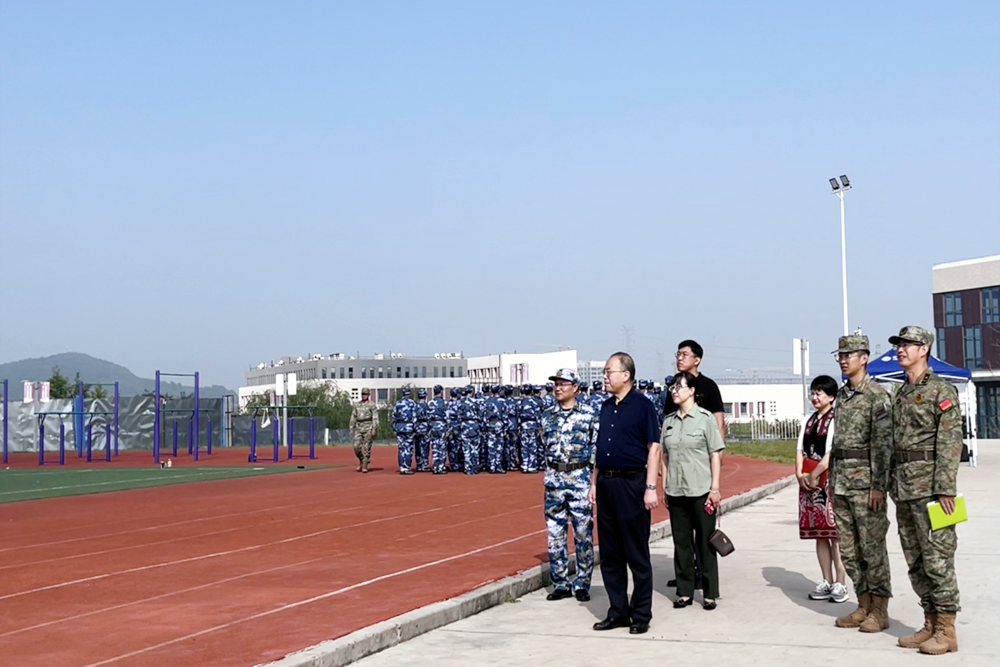 丁林一行分别观看了四个校区正在训练中的新生方队,详细了解新生军训各项训练科目、训练进度、训练情况以及同学们的身体、生活等相关情况,并在现场观看了学生齐步行进与停止、正步的连贯练习、格斗术、射击瞄准动作要领训练等军训环节。丁林对2023级学生军训工作给予充分肯定,他指出,军训是2023级新生开启大学生活的“开学第一课”,更是大学生活中一次重要的思政教育,有助于培养新生过硬的思想、纪律、作风、意志。希望广大学生正确认识军训的重要意义,高标准、高要求、高水平做好各项训练。丁林要求,各部门要高度重视学生军训工作,把训练安全放在首位,把工作做实做细。