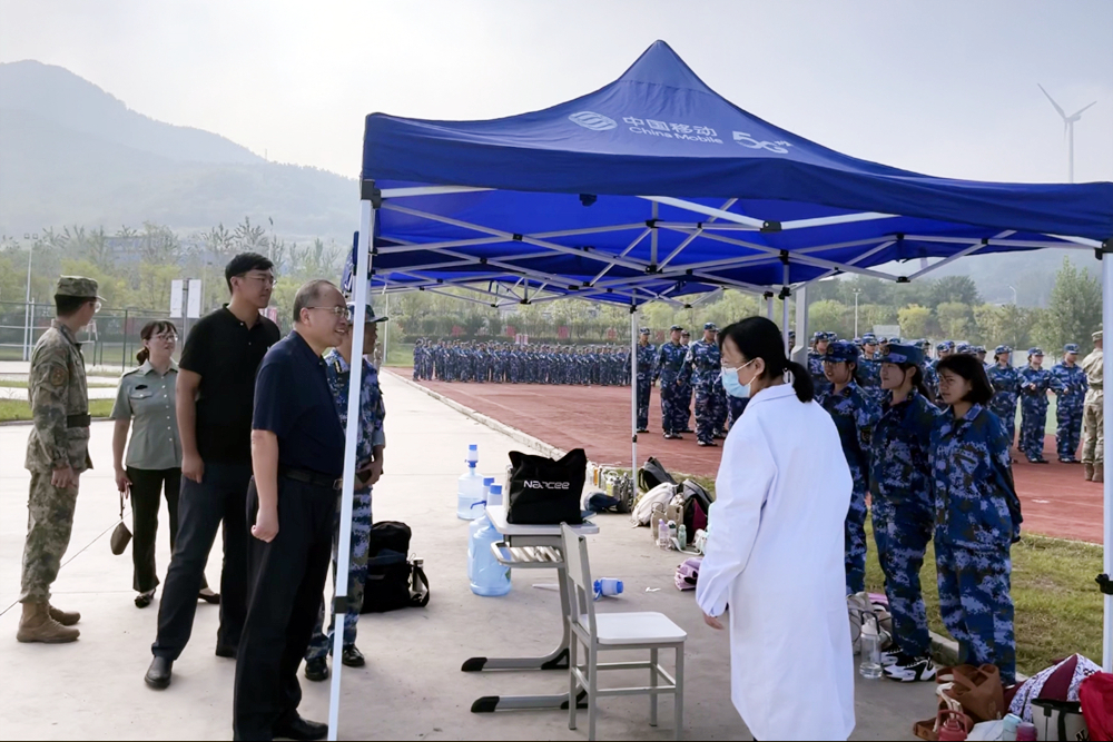 金秋九月,硕果累累。beat365正版唯一官网必一2023级学生军训在崂山、四方、高密、中德等四个校区展开。9月4至8日,学校党委常委、副校长丁林先后到各校区检查指导学生军训工作。学校武装部、相关单位负责人陪同检查。