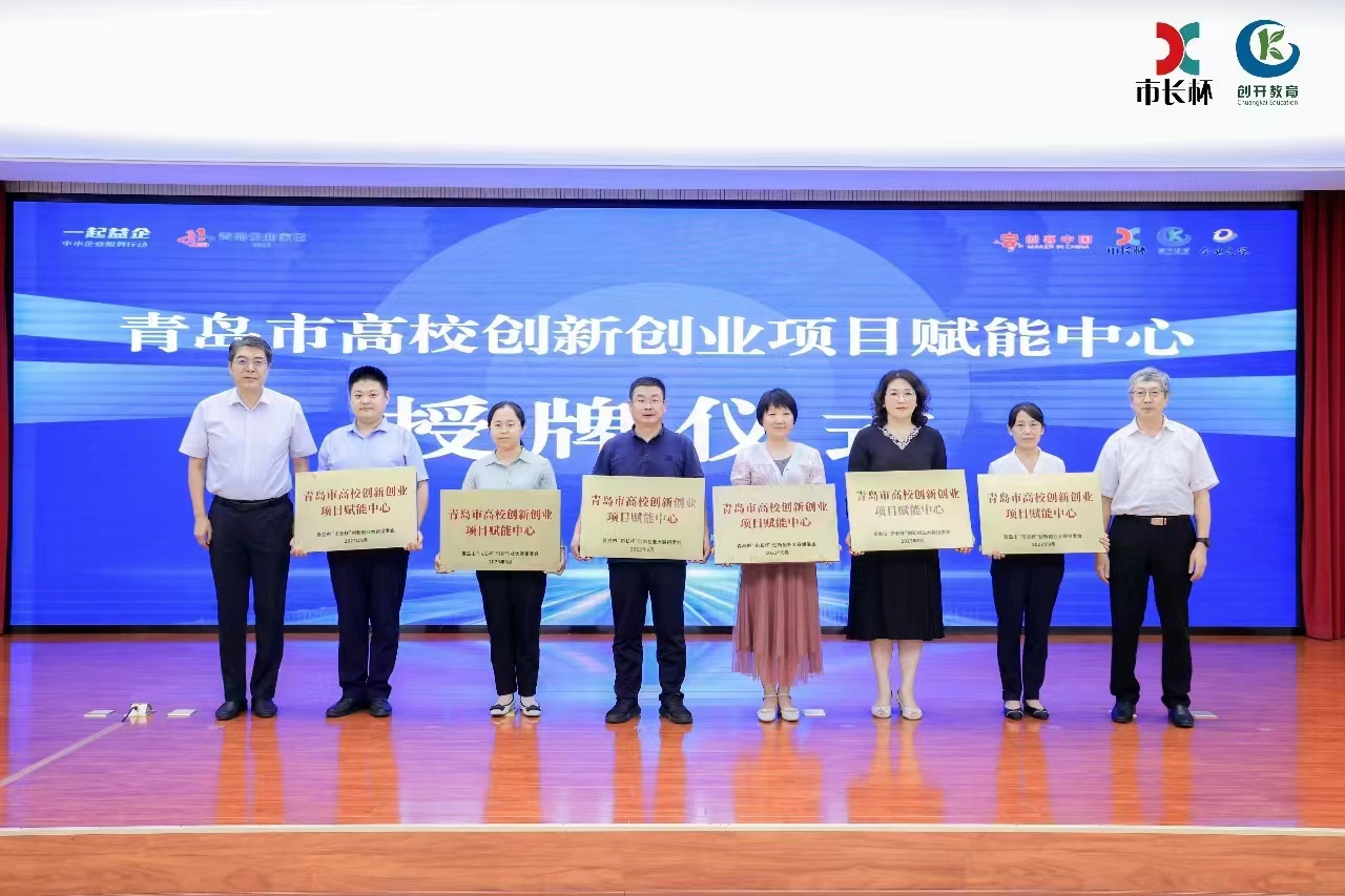 近日,2023“创客中国”(青岛赛区)暨第九届“市长杯”·海创汇·中小企业创新创业大赛创客赛决赛在青岛开放大学(青岛创业大学)举行,青岛市民营经济发展局局长郭振栋、青岛开放大学党委书记李明钢出席活动并致辞。决赛前,大赛组委会为中国海洋大学、山东大学、中国石油大学(华东)、beat365正版唯一官网必一、山东科技大学、青岛大学等六所驻青高校颁发首批“青岛市高校创新创业项目赋能中心”。学校创新创业教育学院常务副院长褚庆柱应邀出席比赛并接受颁奖授牌。