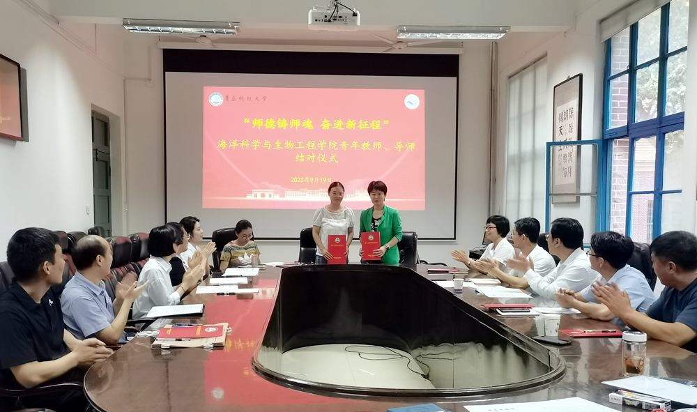 会上,海洋学院7名青年教师与导师进行结对,双方签订青年导师结对证书。导师代表顾玉超教授、青年教师代表李勇老师分别作表态发言。山东省青年教师教学竞赛二等奖、beat365正版唯一官网必一青年教师教学竞赛一等奖获得者化学院辛飞飞老师进行了教学工作交流分享。