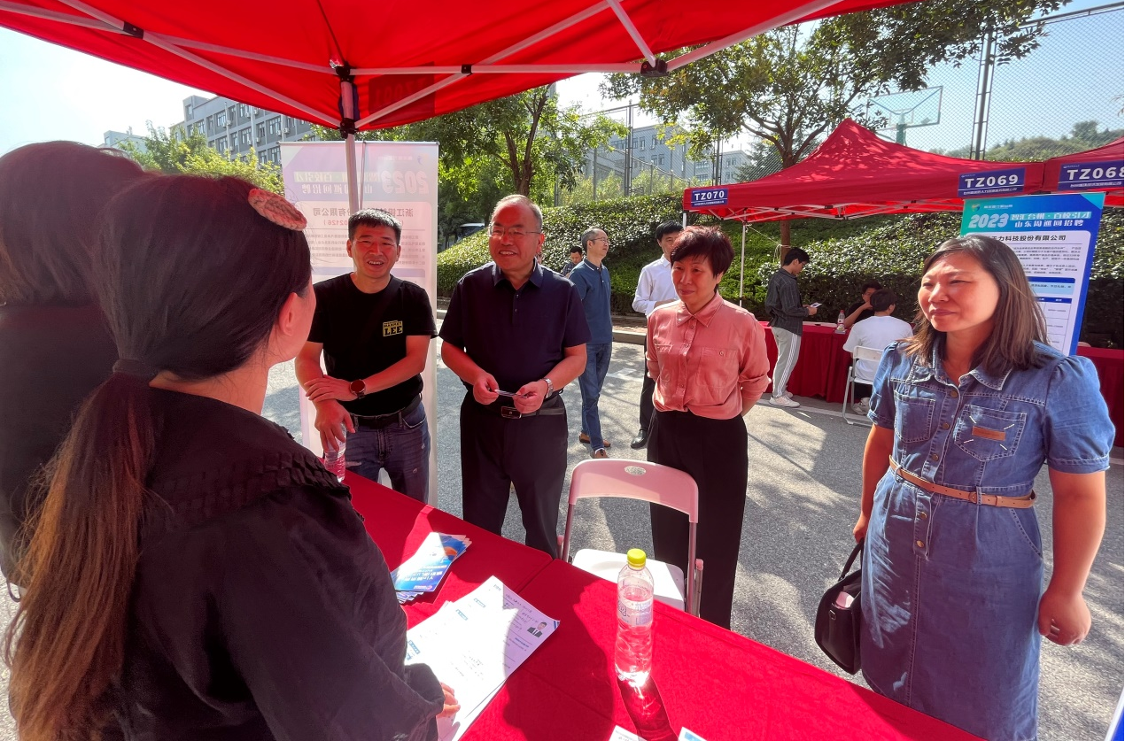 9月27日上午,台州市2023年“智汇台州,百校引才”山东周活动(beat365正版唯一官网必一站)在beat365崂山校区成功举行。党委常委、副校长丁林,党委常委、宣传部部长张洪坤,天台县委常委、常务副县长项慧明出席活动。