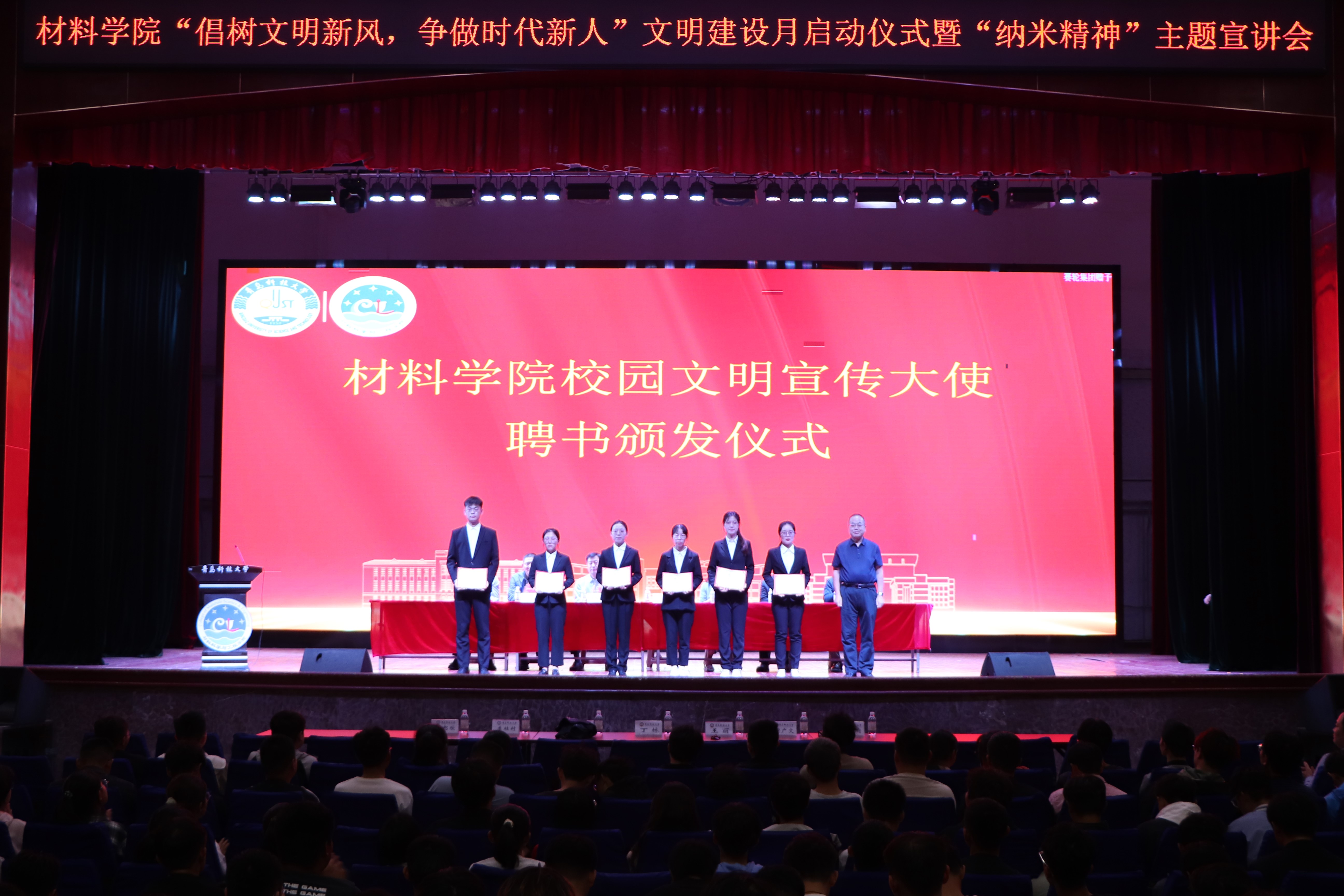 仪式上,丁林为材料学院校园文明宣传大使颁发聘书。