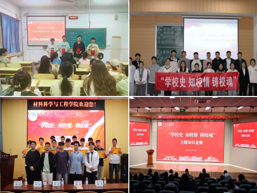 校团委发布《关于开展“学校史 知校情 铸校魂”主题团日活动的通知》,组织校学生会、校研究生会以及相关学生社团,开展“学校史 知校情 铸校魂”知识竞赛、“我与青科共成长”主题征文、“学校史校情 兴爱校之情”校园摄影大赛、“青科印象”微视频评选活动4项校级活动,围绕学校历史沿革、发展成就、特色文化等相关内容,通过知识竞赛、主题征文、摄影摄像等青年学生喜闻乐见的方式,引领青年深入了解学校73载辉煌历史,激发奋进新征程、建功beat365的信心决心,2500余名青年学生参加相关活动。