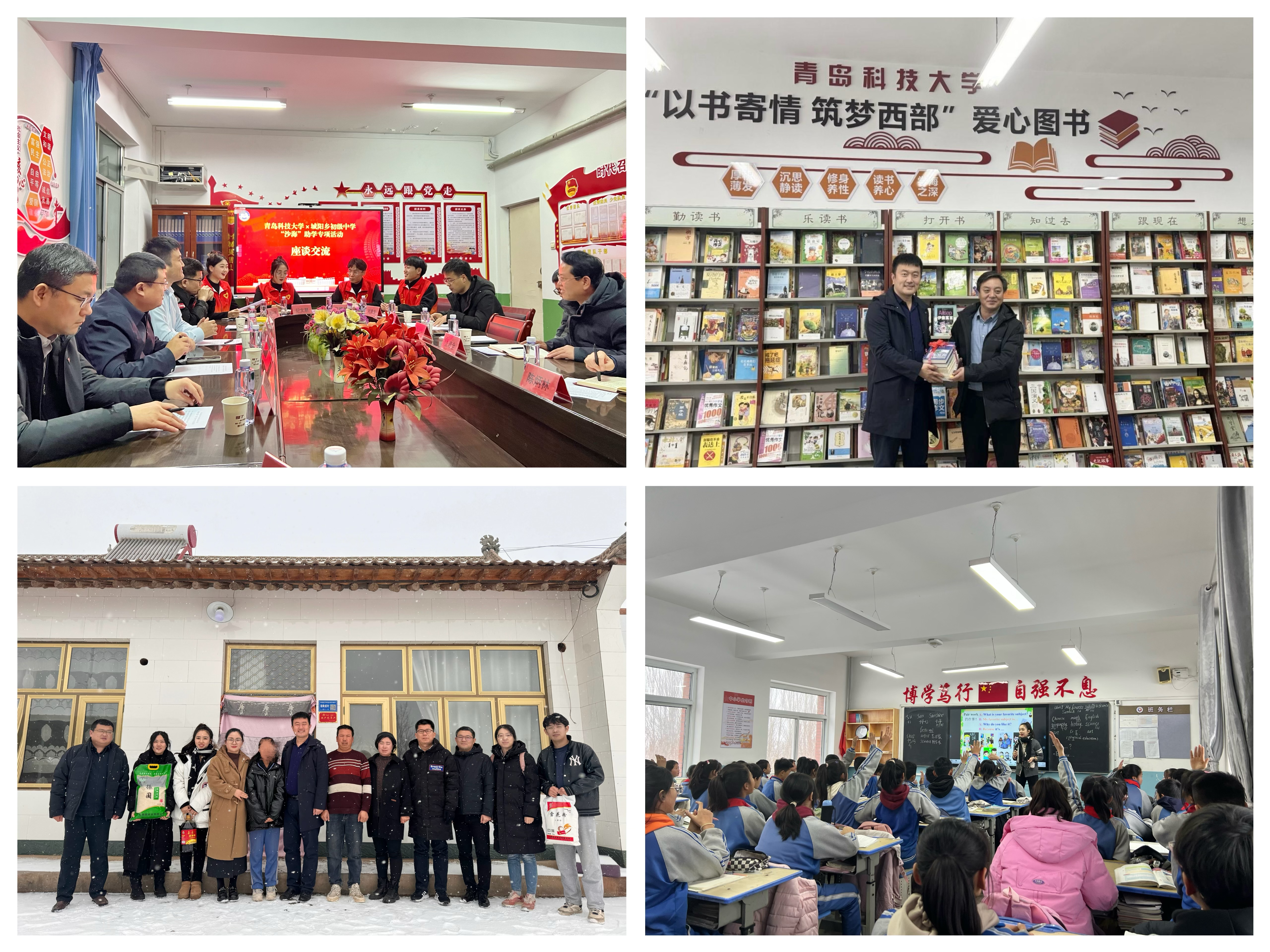 为深化与服务地项目办和服务学校的合作交流,完善“沙海”基金助学育人体系,12月14日至15日,学校团委组织相关学院赴宁夏回族自治区银川市兴庆区月牙湖中学、固原市彭阳县城阳乡初级中学,开展2023年“沙海”助学专项活动,调研学校第二十五届研究生支教团工作并慰问志愿者,支教服务地团组织相关负责人陪同调研。