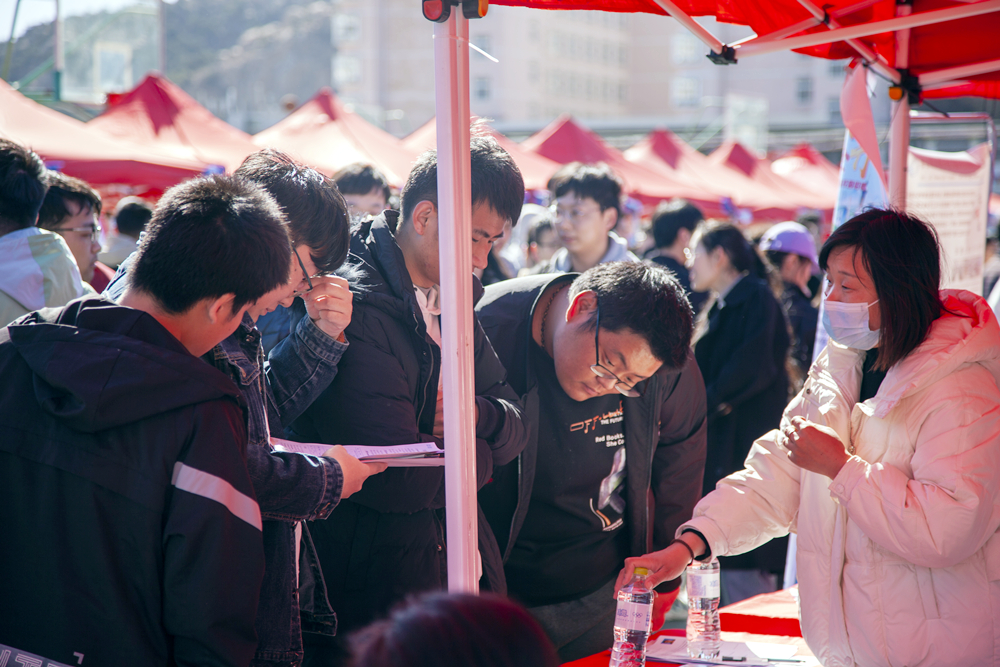 双选会现场气氛热烈,赛轮集团、英科集团、软控股份、青岛环海新时代、中国电建山东电建一公司、裕龙石化、齐翔腾达、江苏杰特、北汽福田、鲁南制药等215家用人单位齐聚一堂,累计为毕业生提供就业岗位3000余个,需求专业涵盖自动化、测控、电气、机械、信息、管理、外语、化工化学、材料等多种类别。现场设置“青鸟计划”“大学生志愿服务西部计划”及“大学生征兵入伍”咨询处,志愿者现场对相关流程、政策优惠等问题给予悉心讲解和耐心解答。双选会现场为用人单位提供面试场地预约等服务,实现人才招引更加快捷高效。