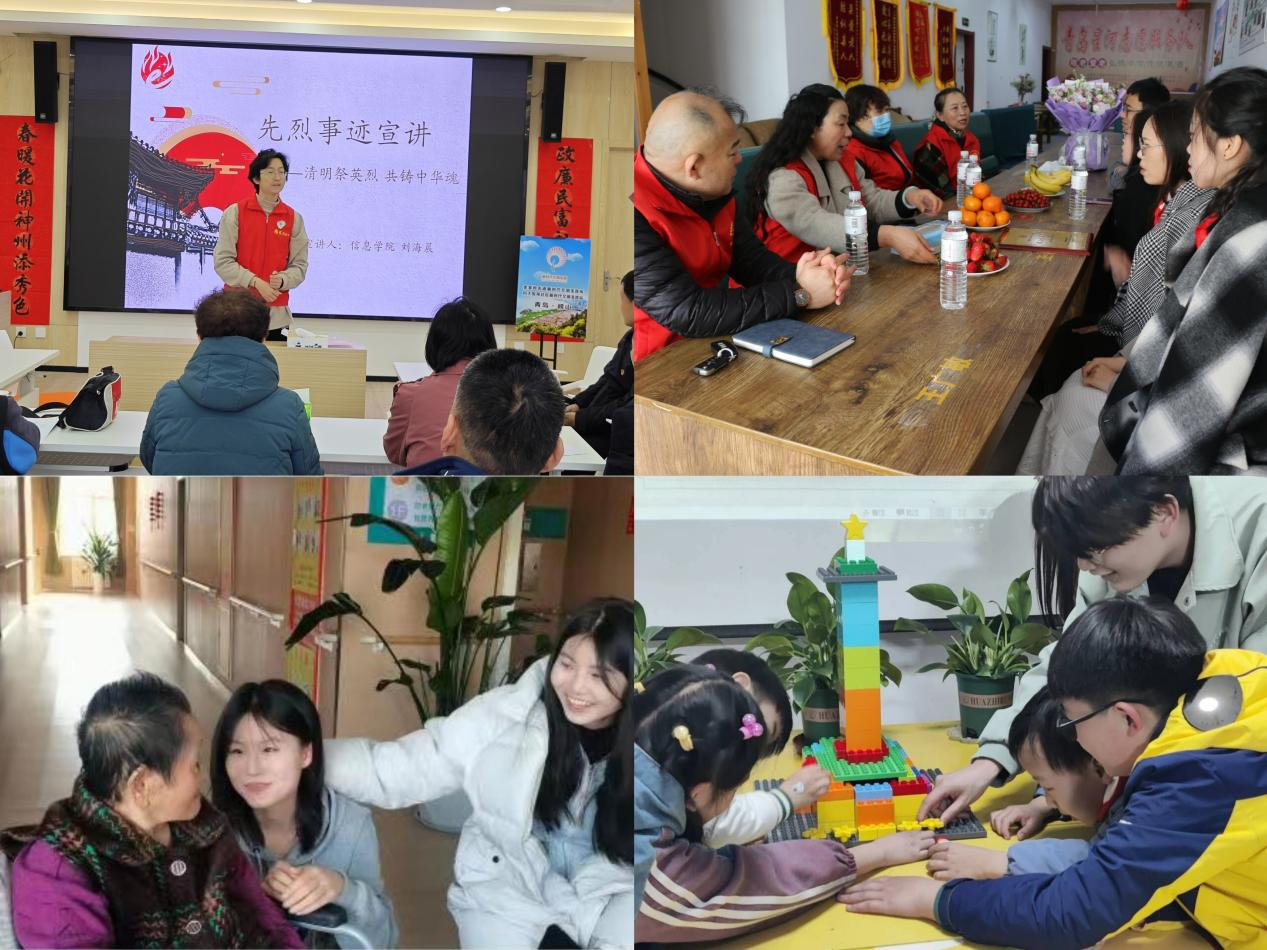 信息学院团委组织星火“e+”学生志愿者在beat365悦苑社区开展“先烈事迹”宣讲活动,志愿者与群众居民共同交流先烈事迹,向社区群众讲述文明祭祀的相关规范要求,倡导文明祭祀。法学院团委组织团支部深入养老机构和小学开展“老少共融暖心行”活动,走进万林居家社区养老服务中心,开展“话岁月,暖心谈”围坐访谈、“悦舞伴老,歌声传情”大舞台,“思维跃动,益智同行”小游戏等活动,与老年人面对面接触、心对心交流。数理学院团委开展清明志愿服务实践活动,组织团员青年赴市南区与青岛最佳志愿服务组织星河志愿服务队开展共建交流,带领青年深耕社区,树文明新风,展青年担当。环境学院团委组织青年学生代表前往市北区阜阳路社区开展面向社区儿童的清明节主题宣讲活动,为小朋友们介绍清明节文化习俗,讲述革命先烈英勇事迹和感人故事,传承红色文化、赓续红色血脉。