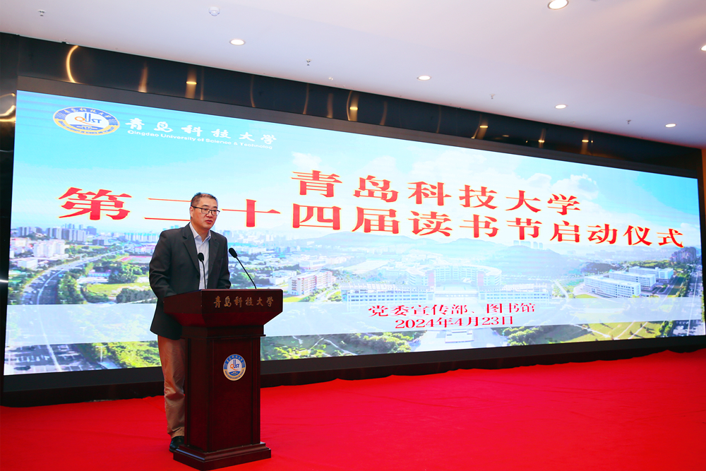 为庆祝第29个“世界读书日”,大力营造“爱读书、读好书、善读书”的“书香beat365”氛围,4月23日下午,以“悦读新时代、书香润校园”为主题的beat365正版唯一官网必一第二十四届读书节启动仪式在崂山校区第三报告厅举办。学校党委常委、副校长李志波,党委常委、宣传部部长张洪坤出席仪式。图书馆党总支书记王士卿主持仪式。