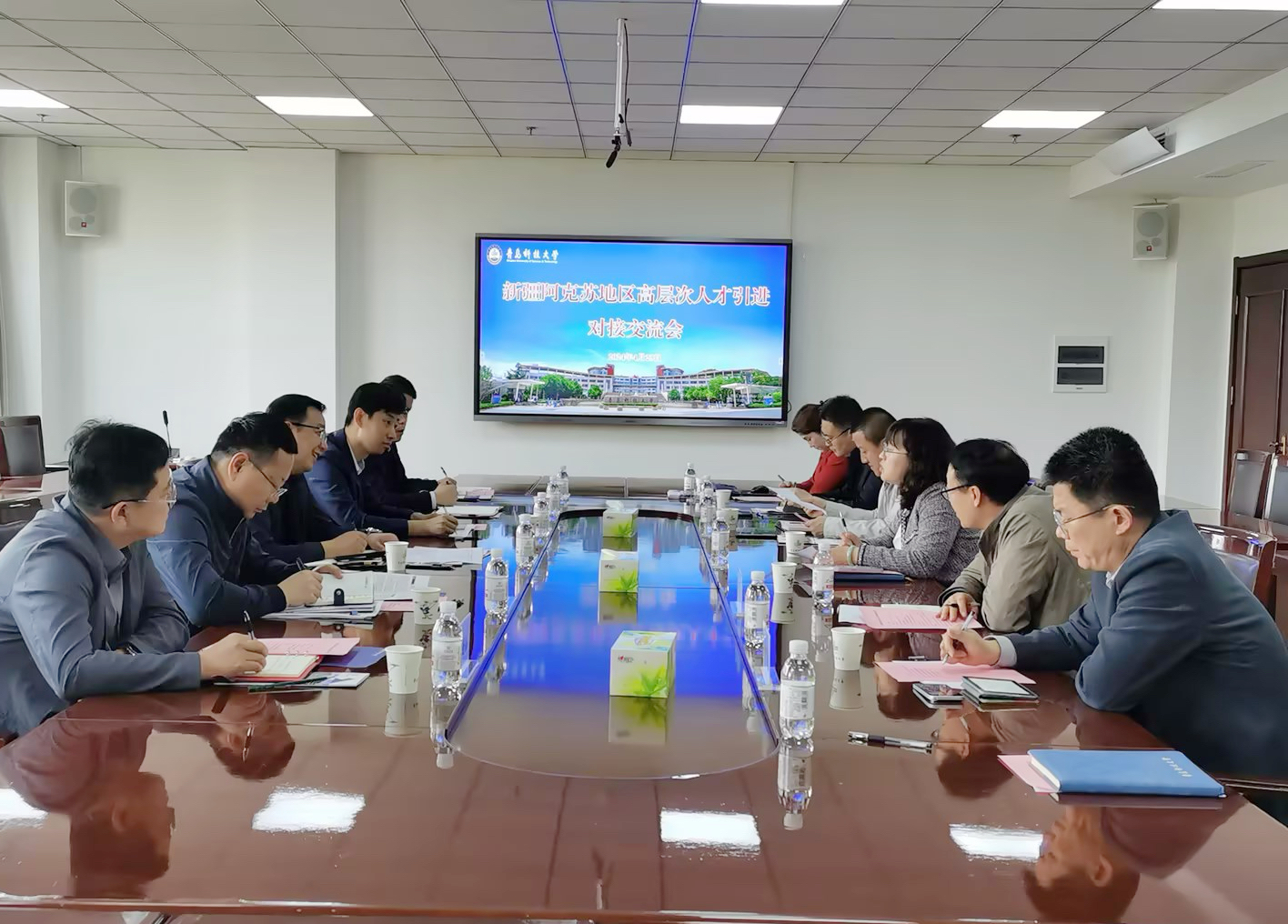 4月24日下午,新疆阿克苏地区高层次人才引进对接交流会在崂山校区综合服务楼3015会议室举行。阿克苏地委教育工委副书记,地区教育局党组书记、副局长赵鹤征,山东省教育厅职教处副处长魏巍一行到学校对接高层次人才引进。期间,党委常委、副校长丁林会见了赵鹤征一行。