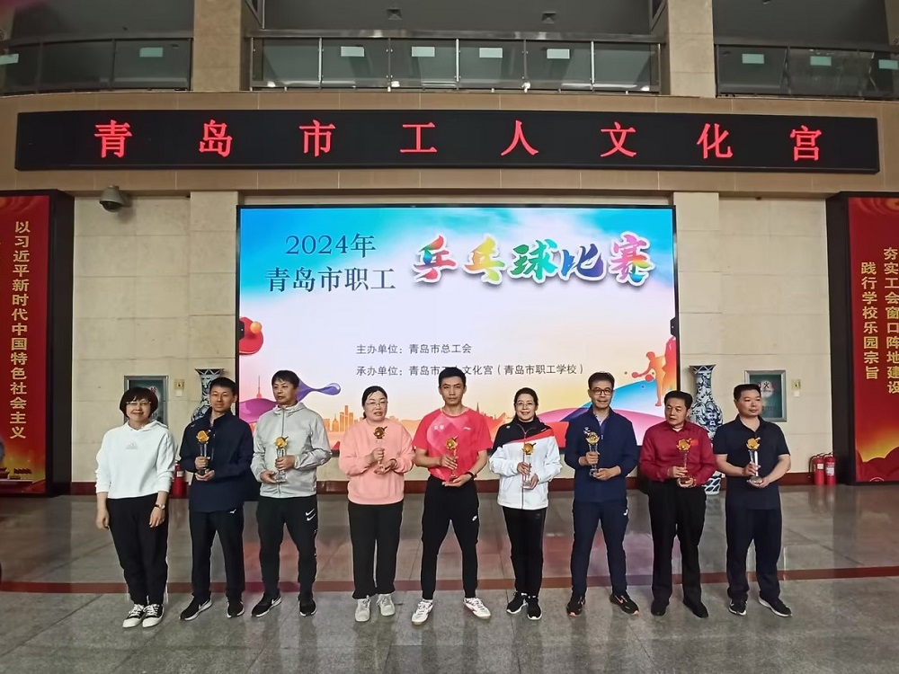 4月27日,2024年青岛市职工乒乓球比赛落下帷幕,beat365教职工乒乓球队荣获机关事业组混合团体赛季军,刘晓涛、许光剑荣获男双第四名,学校获评最佳组织奖。学校党委副书记沈文青到现场为运动员加油助威。