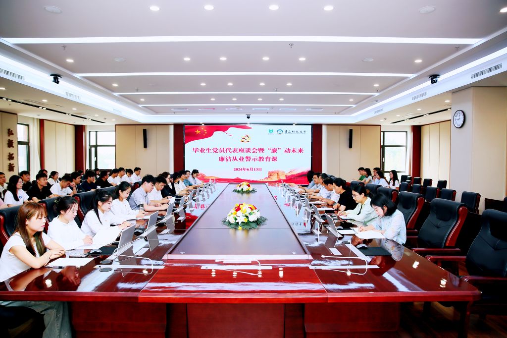 为深入开展党纪学习教育,进一步增强毕业生党员的党性意识和廉洁自律意识,引导毕业生党员扣好廉洁从业“第一粒扣子”,6月13日上午,学校举办毕业生党员代表座谈会暨“廉”动未来廉洁从业警示教育课,学校纪委副书记王江忠,纪委、监察专员办公室综合处处长田小东,党委正处级组织员王磊,毕业生党员代表,纪检监察机关、党委组织部相关人员参加活动。座谈会由党委副处级组织员齐青主持。