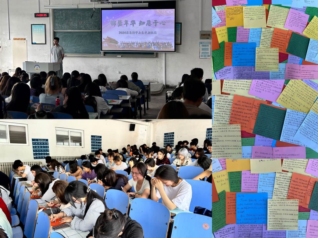 锦瑟年华,知恩于心。学院举办毕业生座谈会,与学生代表面对面交流,倾听心声,了解毕业生的实际困难、个人规划、院校发展意见,并为毕业生送上学院心意与祝福。以“纸短情长”明信片等多种形式开展“毕业送祝福交流共勉励”毕业祝福传递活动,引导毕业生感恩祖国社会、感恩父母老师、感恩母校同学。