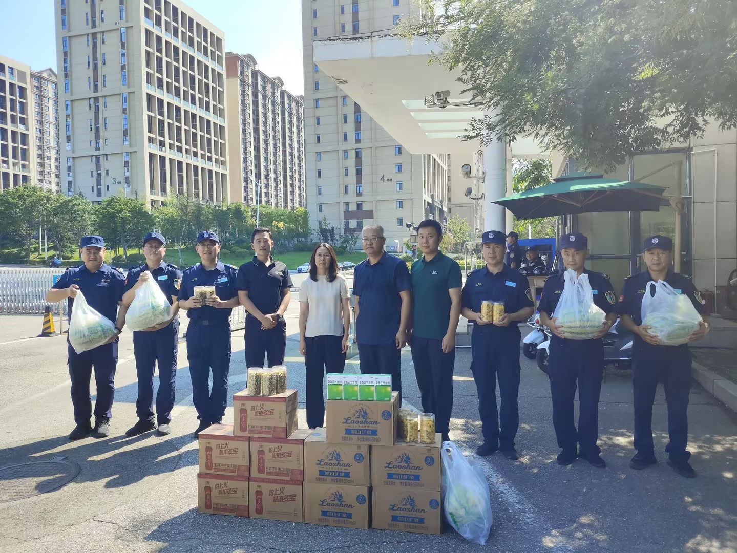 学校工会主席郭永一行先后到崂山校区南苑餐厅、室外篮球场改造现场和东大门,为坚守岗位的学校基础设施改造团队和安全管理处校卫队送上了西瓜、饮料、花茶等防暑降温慰问品和消暑药品,让他们在酷暑中感受到工会送去的清凉与温暖。