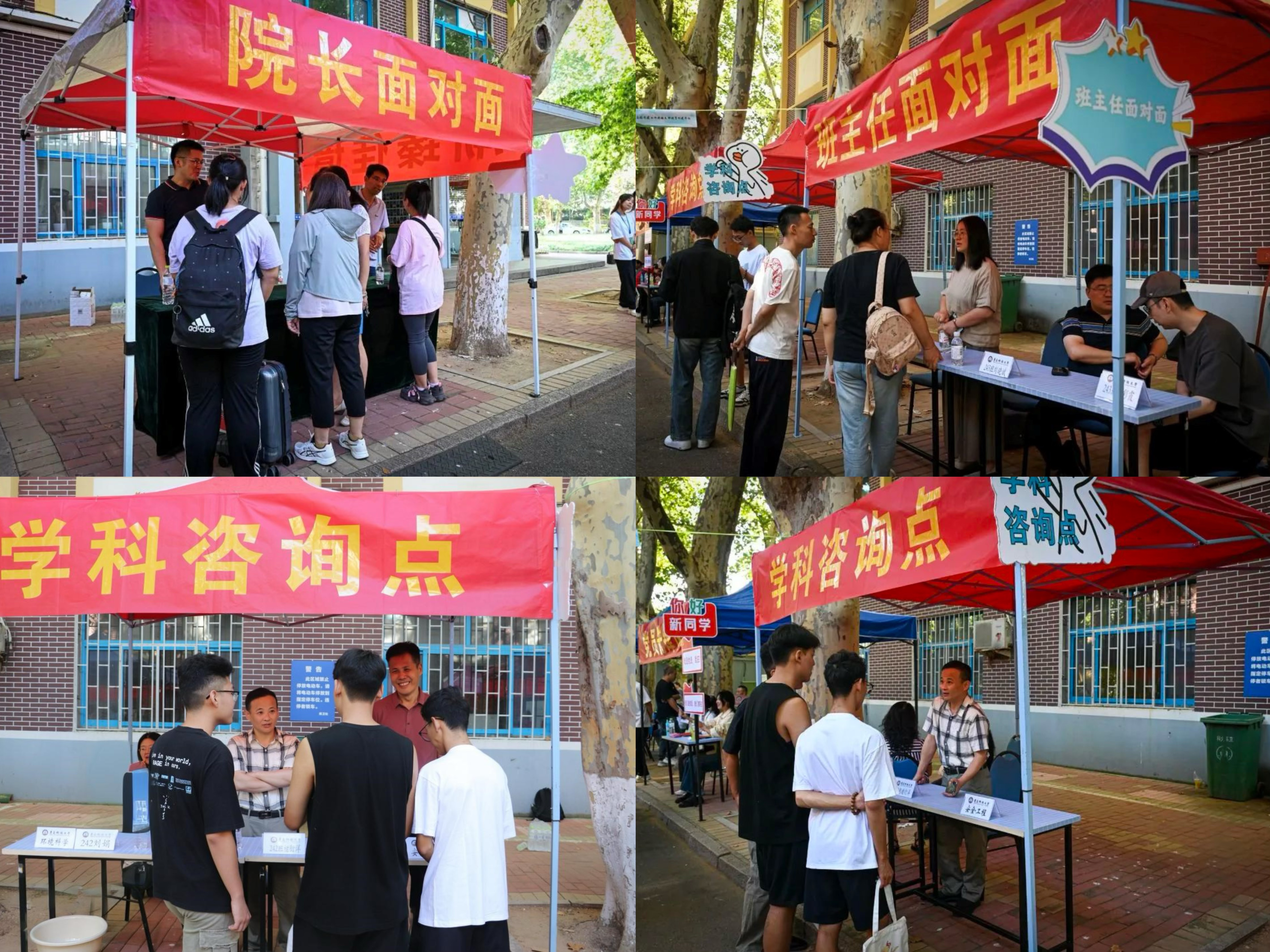 热心筑梦,绘就温馨迎新。学院为全面做好迎新服务保障,院领导高度重视、精心部署,做实做细各项筹备工作。在迎新现场,学院依托“环·净”和“育新党员”两个党员先锋岗设置了“院长面对面”“班主任工作站”“专业咨询点”等多个服务点,充分发挥先锋模范作用,提供集专业、科创、家校等一体化服务站点,为新生及家长提供全方位帮助,将三全育人贯穿迎新工作全过程。在志愿者的热情指引下,新生们热闹而有序地进行着身份认证、确认信息、领取资料等报到手续。迎新志愿者为新生提供行李接送、校园引导等贴心服务。在家长休息区,院领导和老师们亲临现场,与新生及家长亲切交流、深入解答,营造了浓厚的家校协同共育氛围。