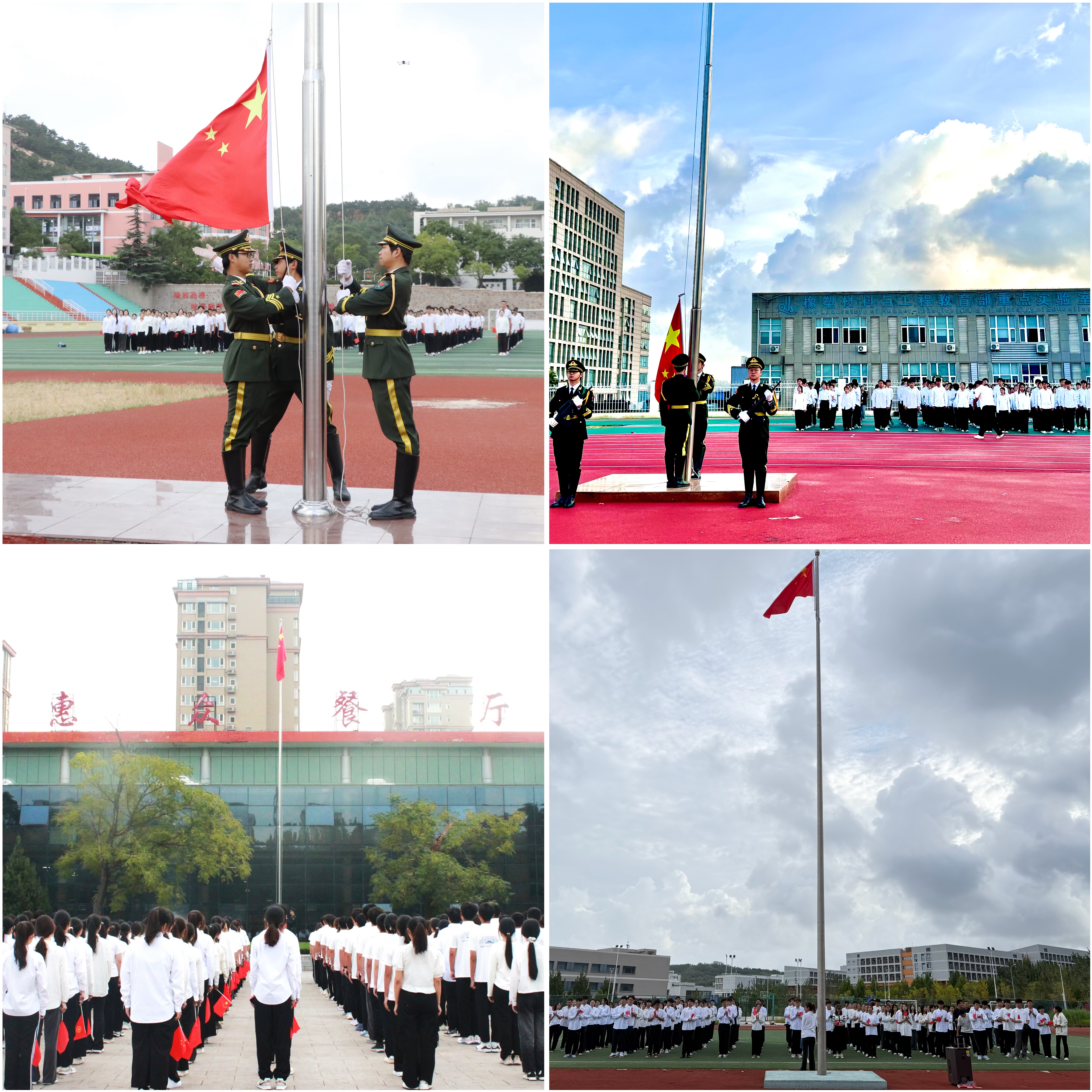 为庆祝中华人民共和国成立75周年,在第十一个“中国烈士纪念日”到来之际,9月30日,学校“七十五载长歌奋进,赓续前行再奏华章”主题升旗仪式在崂山校区运动场、四方校区东山操场、中德工程学院操场以及高密校区操场举行,1200余名师生代表参加仪式。
