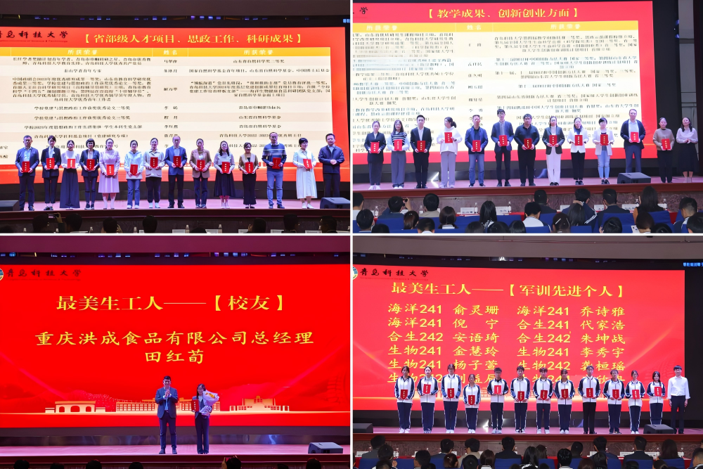 会上,张洪坤为在省部级人才项目、思政工作、科研成果方面取得优异成绩的“最美生工人”教师颁发了荣誉证书;马翠萍为在教学成果、创新创业等方面取得优异成绩的“最美生工人”教师颁发了荣誉证书;王泽鹏为“最美生工人”退休教师颁发了荣誉证书;王帅为“最美生工人”校友颁发了荣誉证书。研究生院、学生处、后勤处、校团委等部门负责人分别为学院最美研究生、学业之星、体育之星、科创之星、实践之星、文化之星颁发了荣誉证书。
