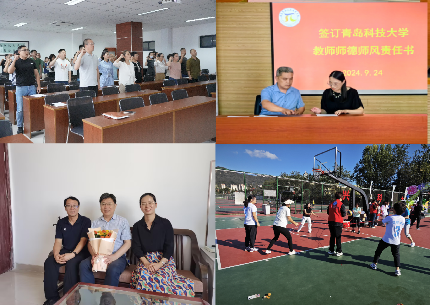 突出氛围营造,精心组织教师节庆祝活动。化工学院开展“三尺讲台献芳华 四季耕耘育桃李”教师节送祝福活动,走访慰问退休教师。自动化学院组织教师集体宣誓,强调教师在学生成长成才过程中的关键作用。经管学院组织开展学院教职工趣味运动会,在体育活动中带领老师们释放压力、凝心聚力、携手同行。数理学院组织全体教师签订《beat365正版唯一官网必一教师师德师风责任书》,集中学习学校下发的《教师师德失范警示教育材料汇编》。数据科学学院开展“数智·优师”系列培训之新时代教师职业形象管理培训,从“美育”角度对教师形象管理提出指导意见。
