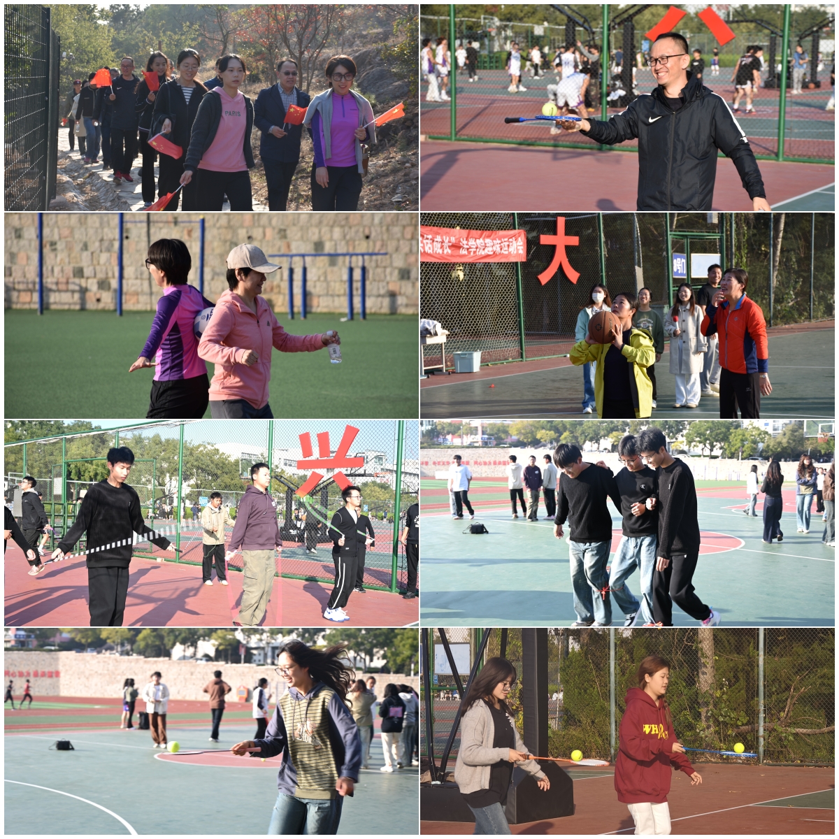 运动会分为健步行活动和趣味运动两个环节组成。师生沿着新修缮完毕的金岭山生态公园健步行,既感受了自然风光,领略了学校人文风景,又敞开心扉,聊天谈心,锻炼了身体,释放了压力。趣味运动环节设置了“你划我猜”“踩气球”“不倒森林”等8个项目,各组队员默契配合,互相激励,尽情享受运动的乐趣,现场呐喊欢呼声不断,处处洋溢着蓬勃的朝气。