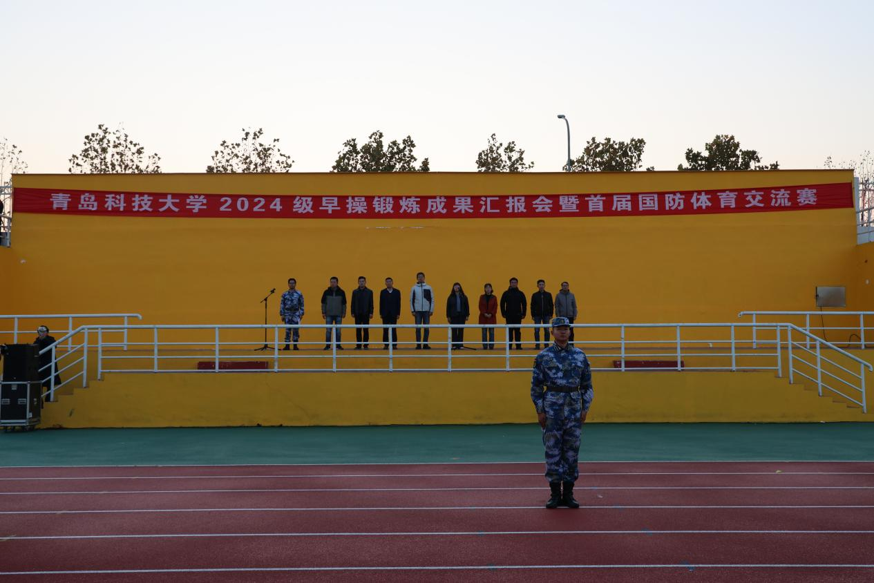 11月7日清晨,2024级早操锻炼成果汇报会暨首届国防体育交流赛在四方校区举行。山东省学校国防教育协会相关负责人,学校学生处、体改办相关负责人,各学院分管副书记、大一年级组辅导员及2024级学生参加活动。
