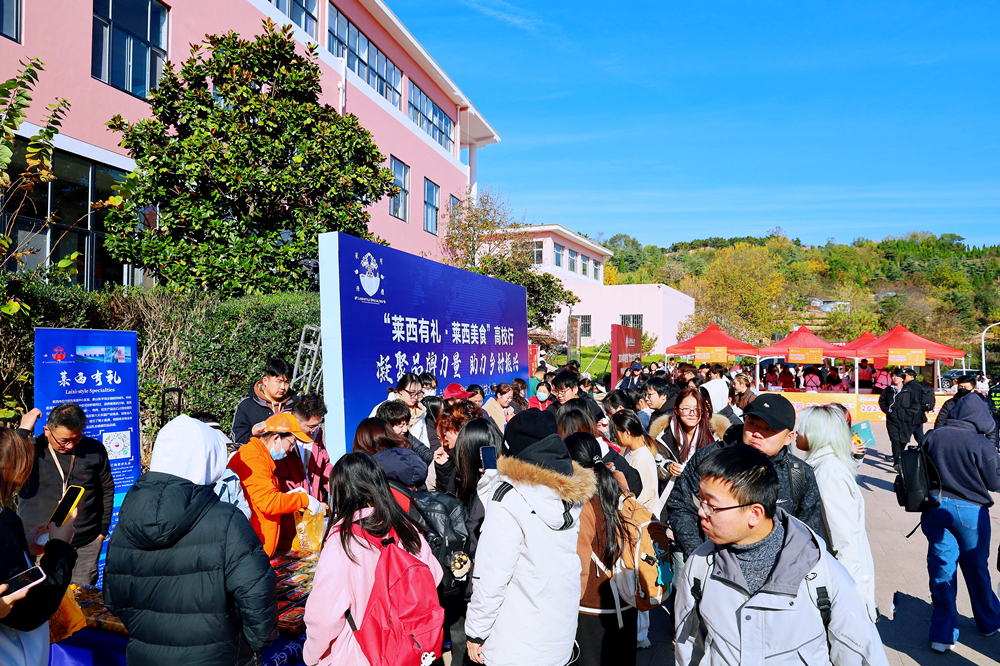 活动现场气氛热烈,充满浓厚地方特色。主办方精心布置了展示区,充分展示莱西的风土人情、历史文化以及丰富多样的美食产品,如莱西湖水库鱼、夏格庄蒜香鸡、莱西白茶、莱良米面粮油、莱良花饽饽、麻酱鸡蛋、兴禾玉米、金秋红蜜、东大寨苹果、院上联镇工贸秋月梨、葡萄、薯我甜地瓜、许氏三农奇异莓、点石文具、中华抻面、羊肚菌、莱西蜜姜、官道小米等,工作人员与参加活动的师生深度互动,认真介绍各类特色产品并供师生免费品鉴,让师生们身临其境般置身于莱西的独特魅力之中。据悉,近年来莱西市充分挖掘资源禀赋,结合特色主导产业发展现状,倾力推出“莱西有礼”区域公共品牌,通过严格质量把控,着力打造让消费者放心、具有莱西特色的优质产品集群。
