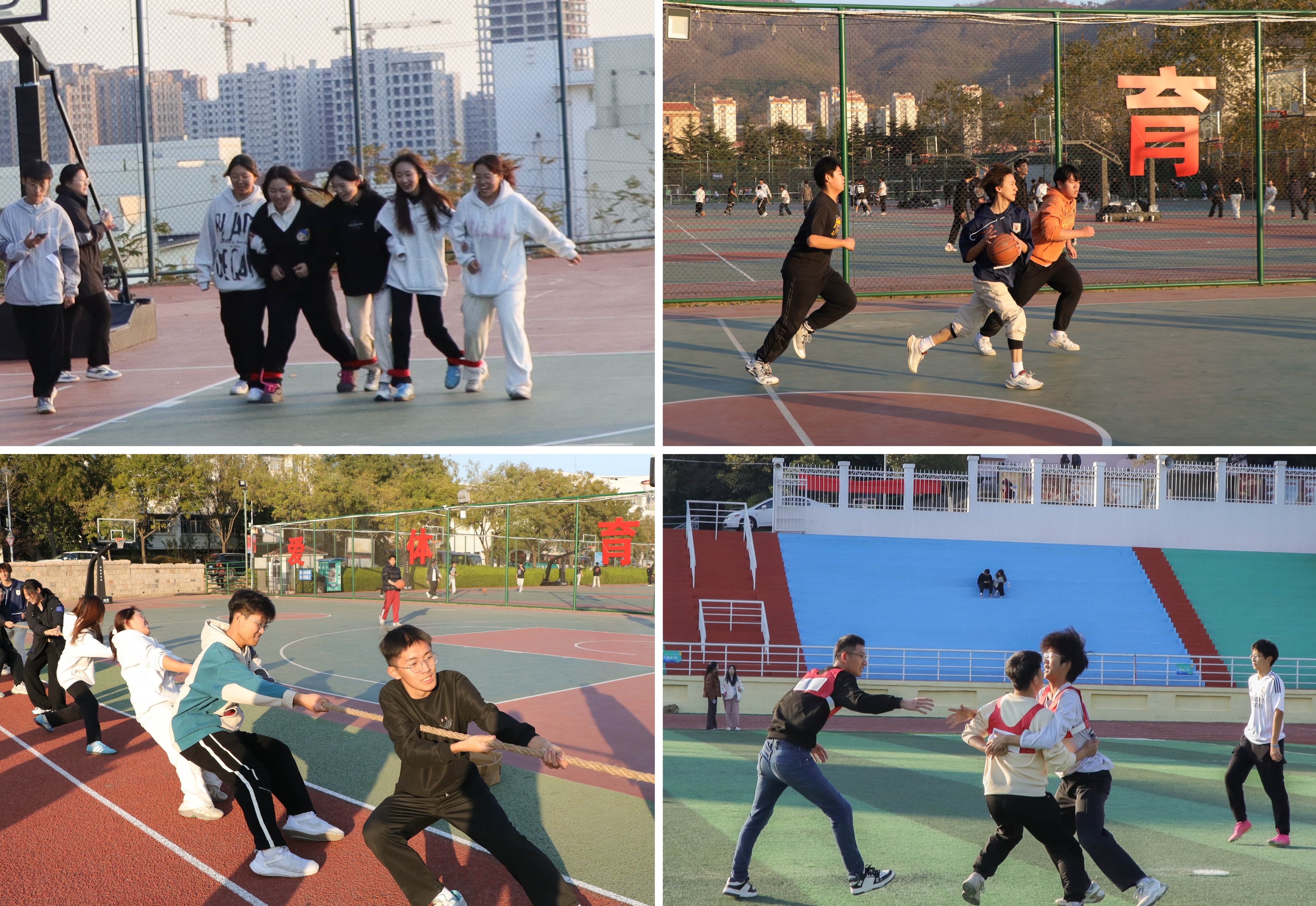 在素质拓展环节,校学生会、校研究生会全体成员和学校“青马工程”领雁训练营分组开展了篮球对抗赛、拔河友谊赛、“五人六足”、“捕鱼织网”、“撕名牌”、“珠行万里”等活动,各团队团结合作、默契配合,进一步增强了学生骨干的集体意识和配合意识、提升身体素质和综合素质,为今后各项工作开展注入新动力。