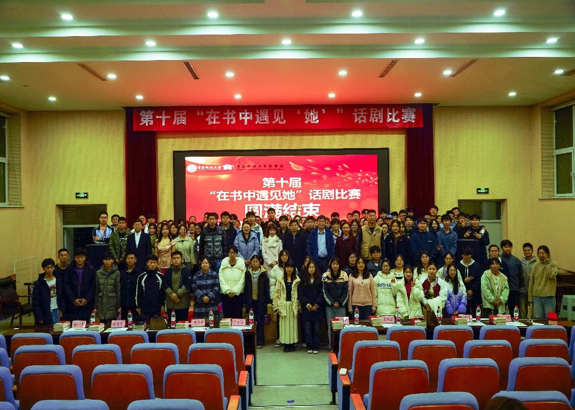 “在书中遇见‘她’”话剧比赛是图书馆“质量服务月”期间阅读推广的品牌活动,已连续举办十届,深受大学生欢迎,已成为传播书香文化熠熠闪亮的明信片。本届比赛以“筚路蓝缕传薪火,继往开来谱新篇”为主题,旨在向中华人民共和国成立75周年献礼。活动自10月初开始筹备,历经两个月的精心排练、打磨,从红色革命、科技兴国、乡村振兴、雷锋精神等方面引导学生与国家发展同脉搏,铭记历史、珍惜当下,以好书为伴、与经典同行,陶冶精神情操,提升博雅素养,做新时代奋发向上的大学生。